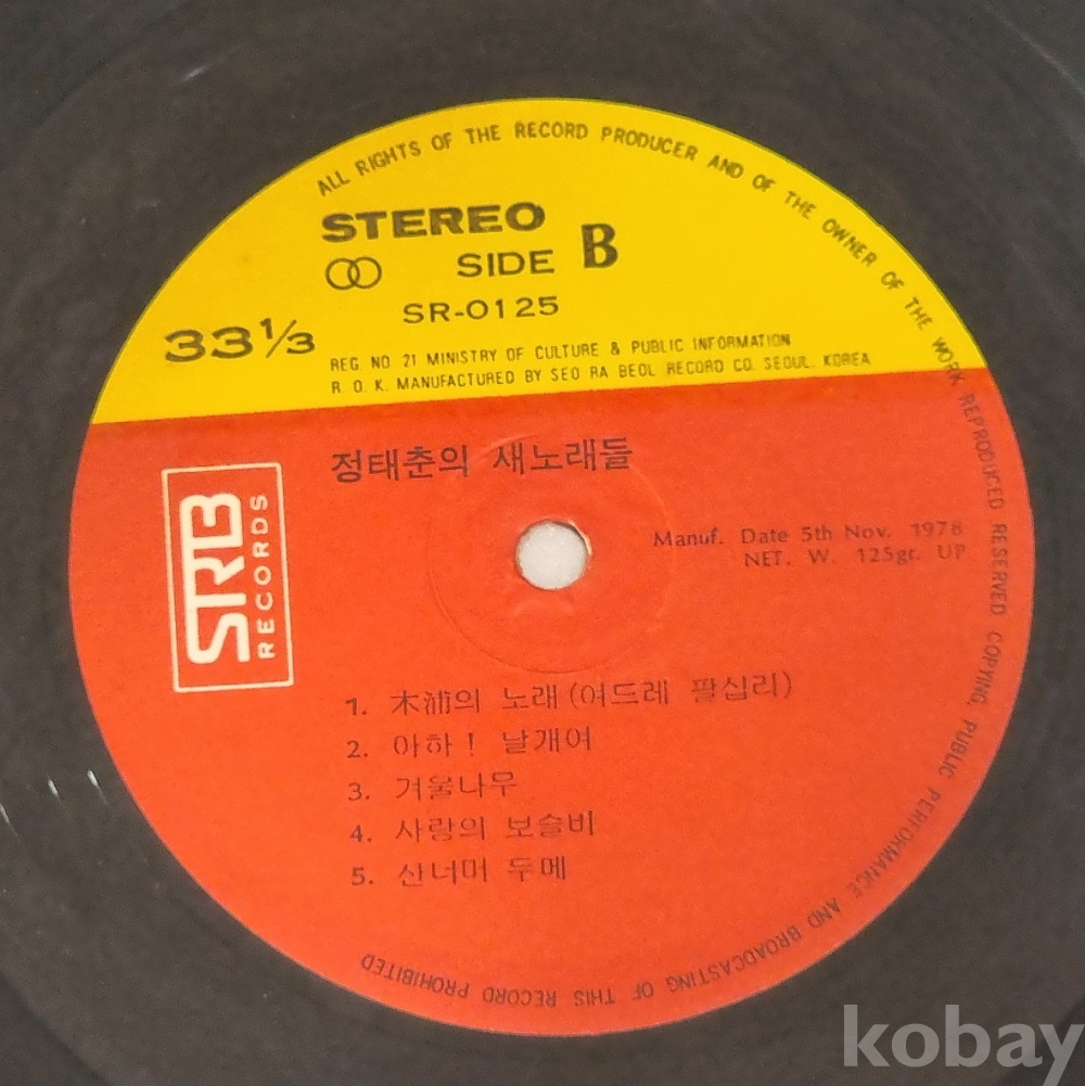 | 자켓상태 | EX : 약간의 마모, 모서리 찢김 존재 | 음반상태 | EX : 재생에 영향 없는 가벼운 기스 존재 | 발매정보 | 알수없음 | 가사지여부 | 무 |