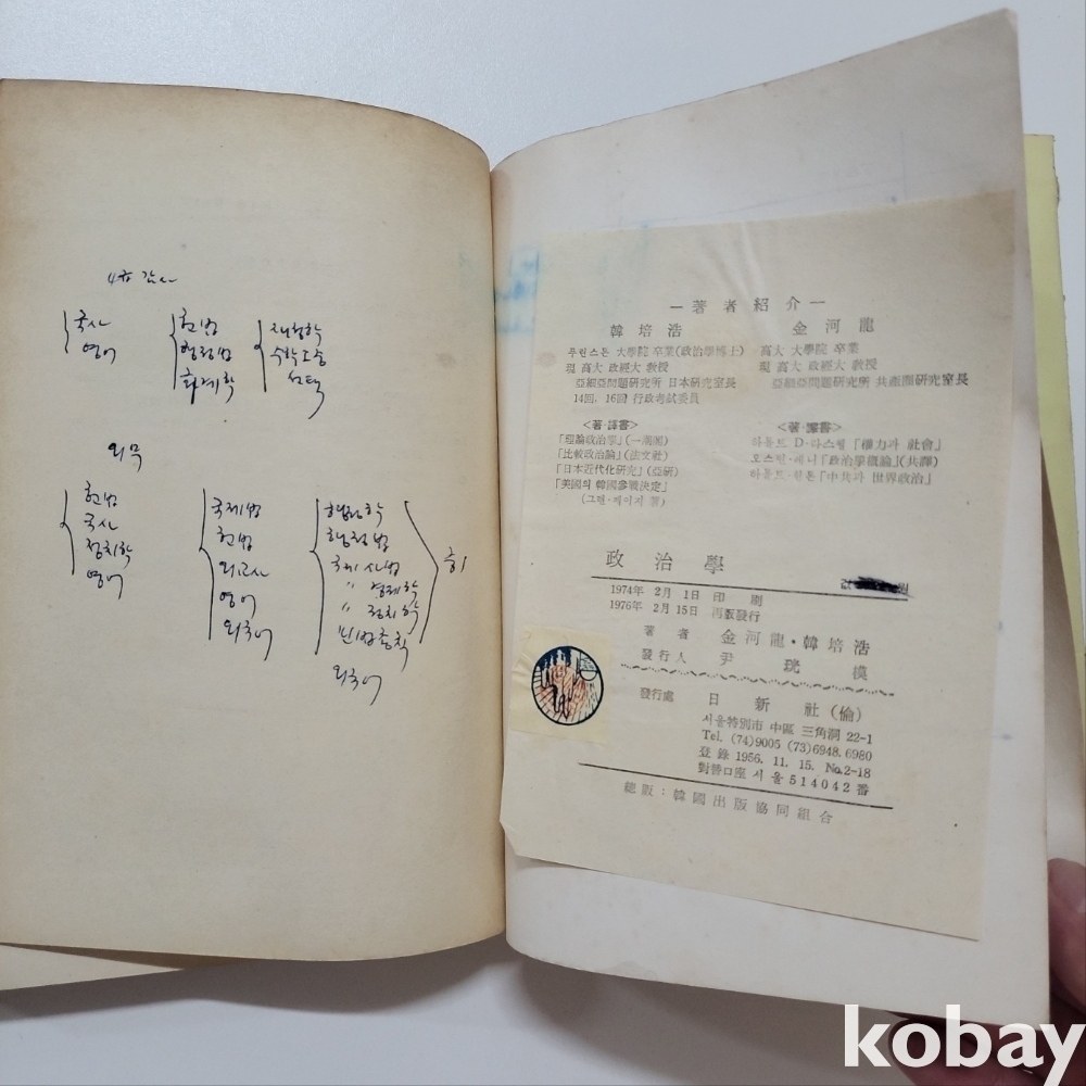 1976년 일산사 발행 '정치학' 도서입니다. (시대 귀한 도서)