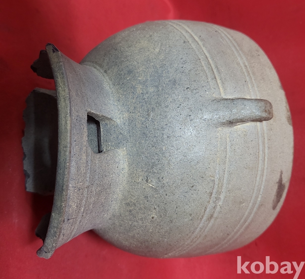 신라토기( 新羅土器) 줄(線)문양 삼이호(三珥 壺)입니다,
