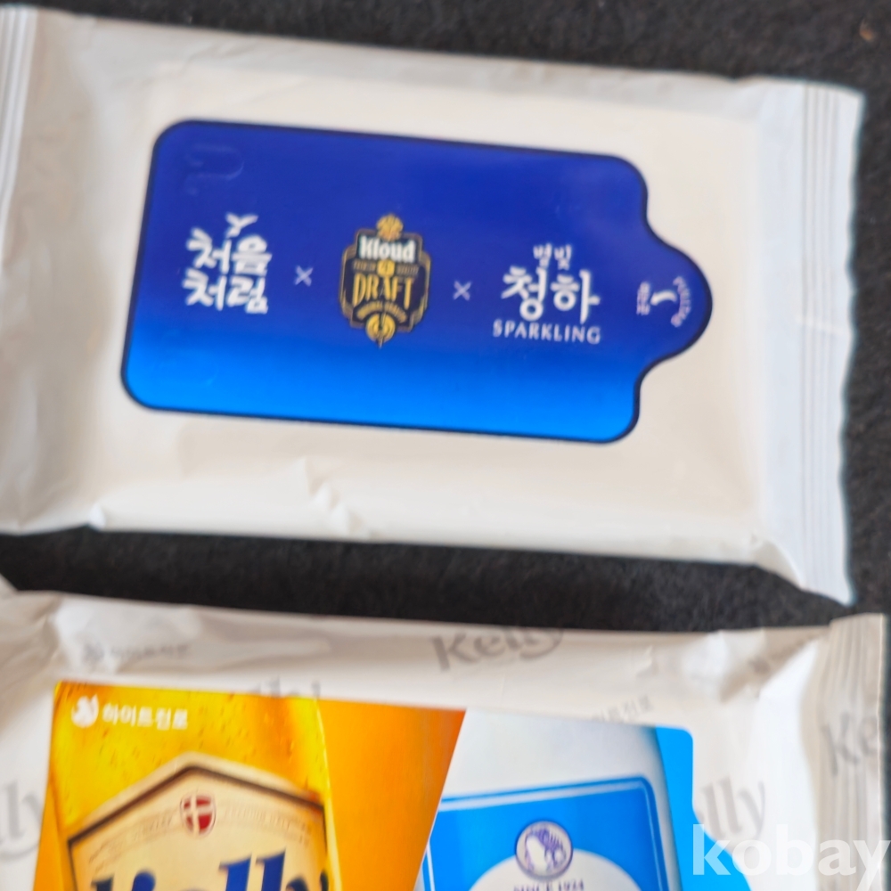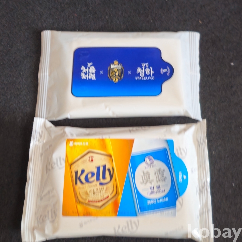 (((근현대사자료/술자료))) (처음처럼/클라우드/별빛청하)+(진로소주/kelly) 미사용 휴대용 물티슈 2종
