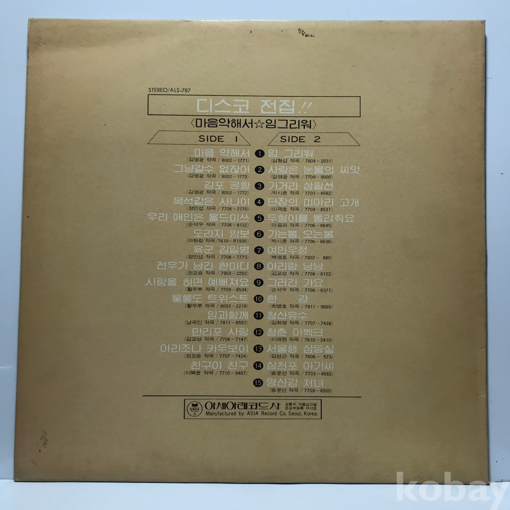 LP 85,100-7 디스코 전집 - 마음 약해서/ 임 그리워 자켓 EX 알판 EX 81 년 국내반