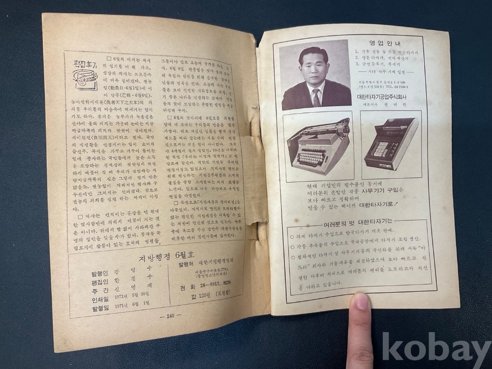 [한국현대사, 제3공화국, 지방세, 지적] <지방행정 1971년 6월호>, p. 240. 중급(표지 얼룩, 책등 손상)