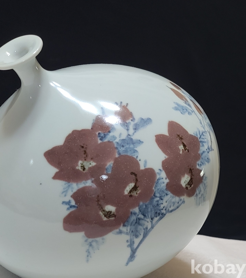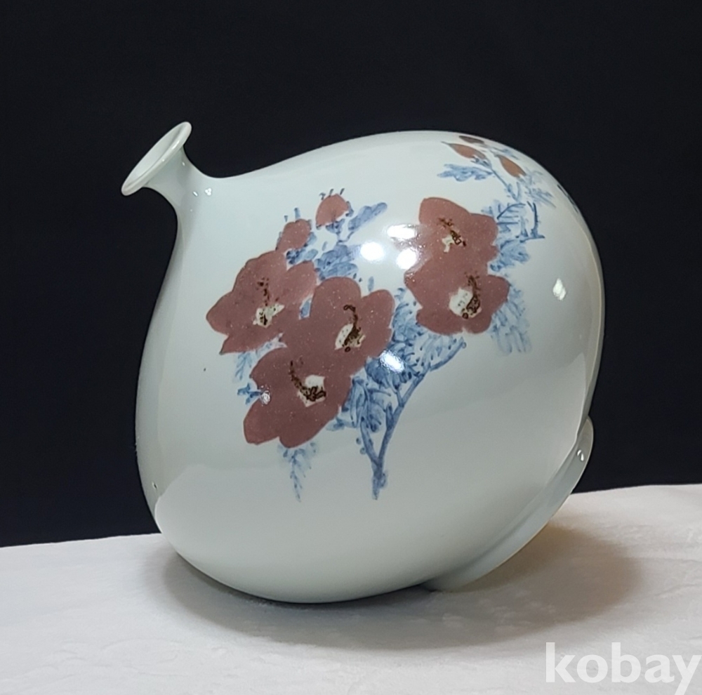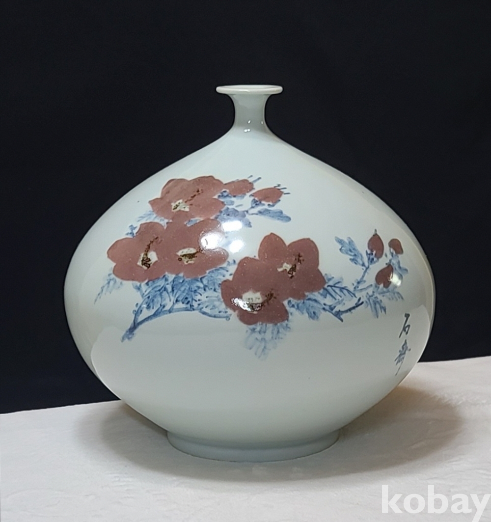 광주왕실도자기 초대명장이신 "지당" 박부원 作 <백자진사철화청화모란문소구호> 입니다.