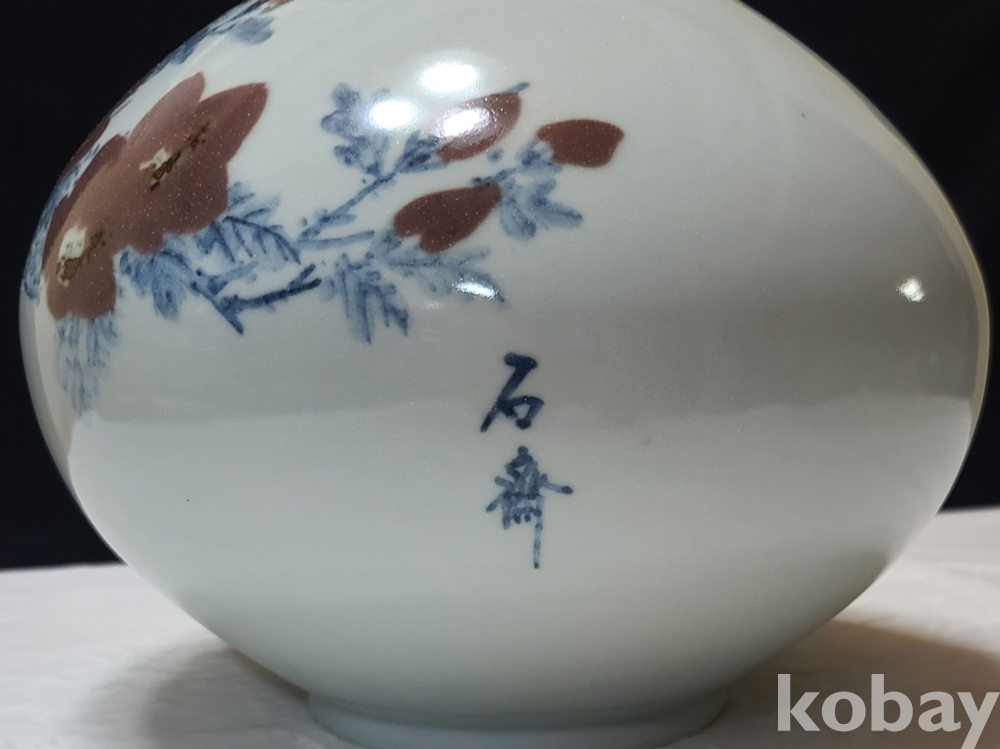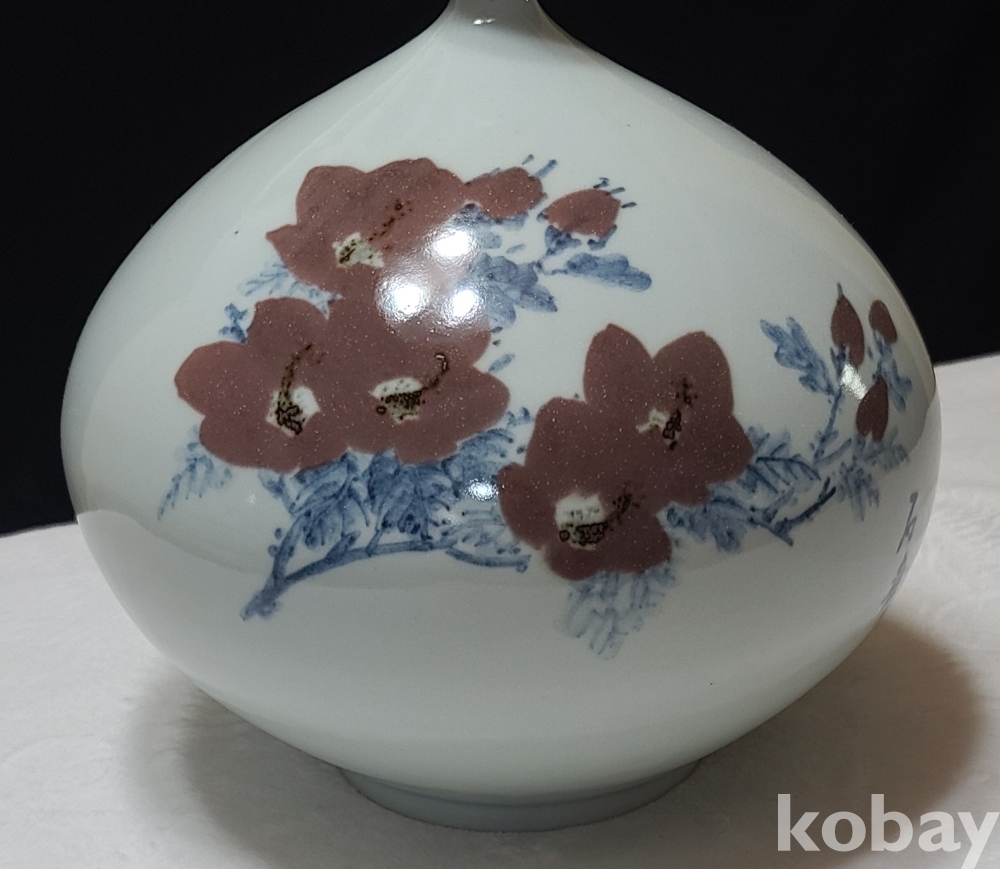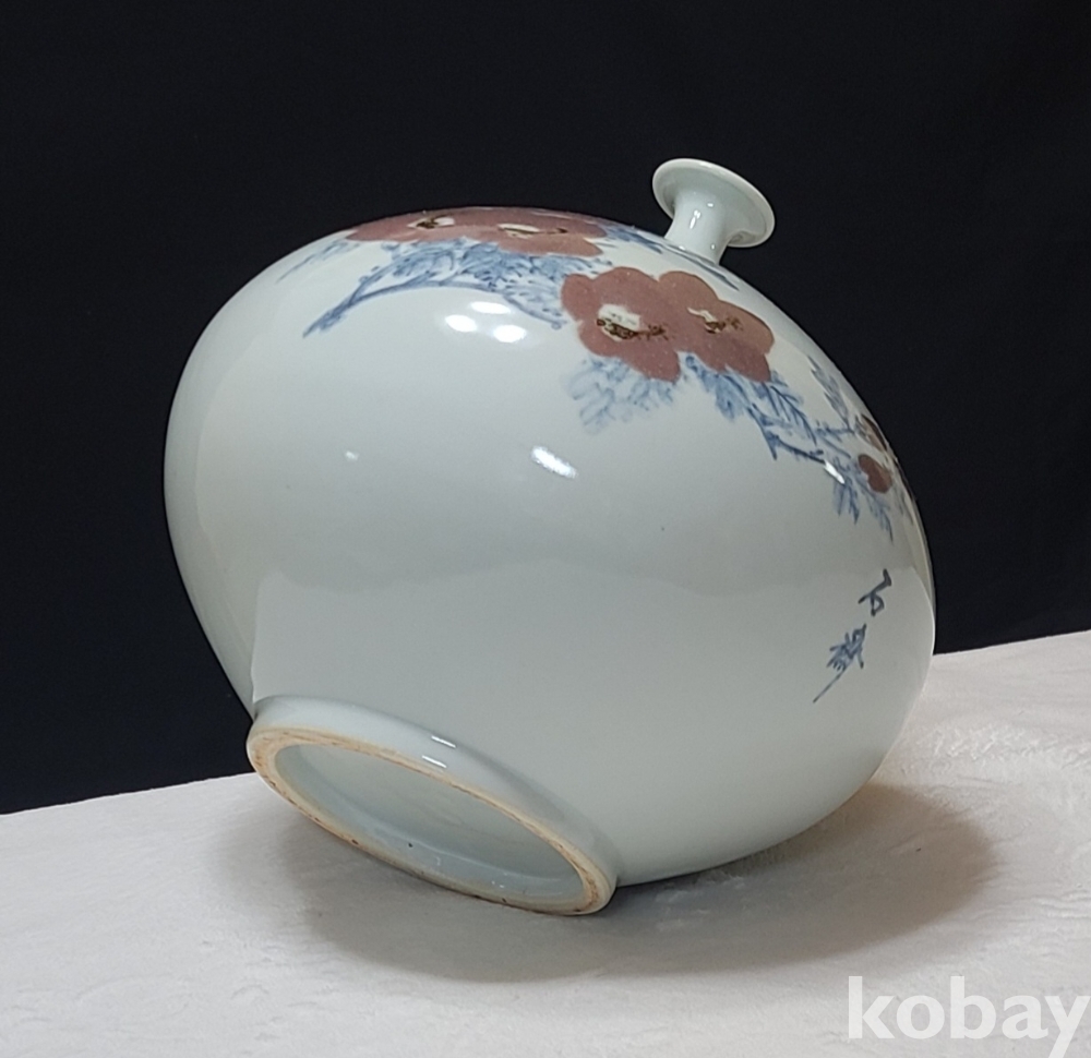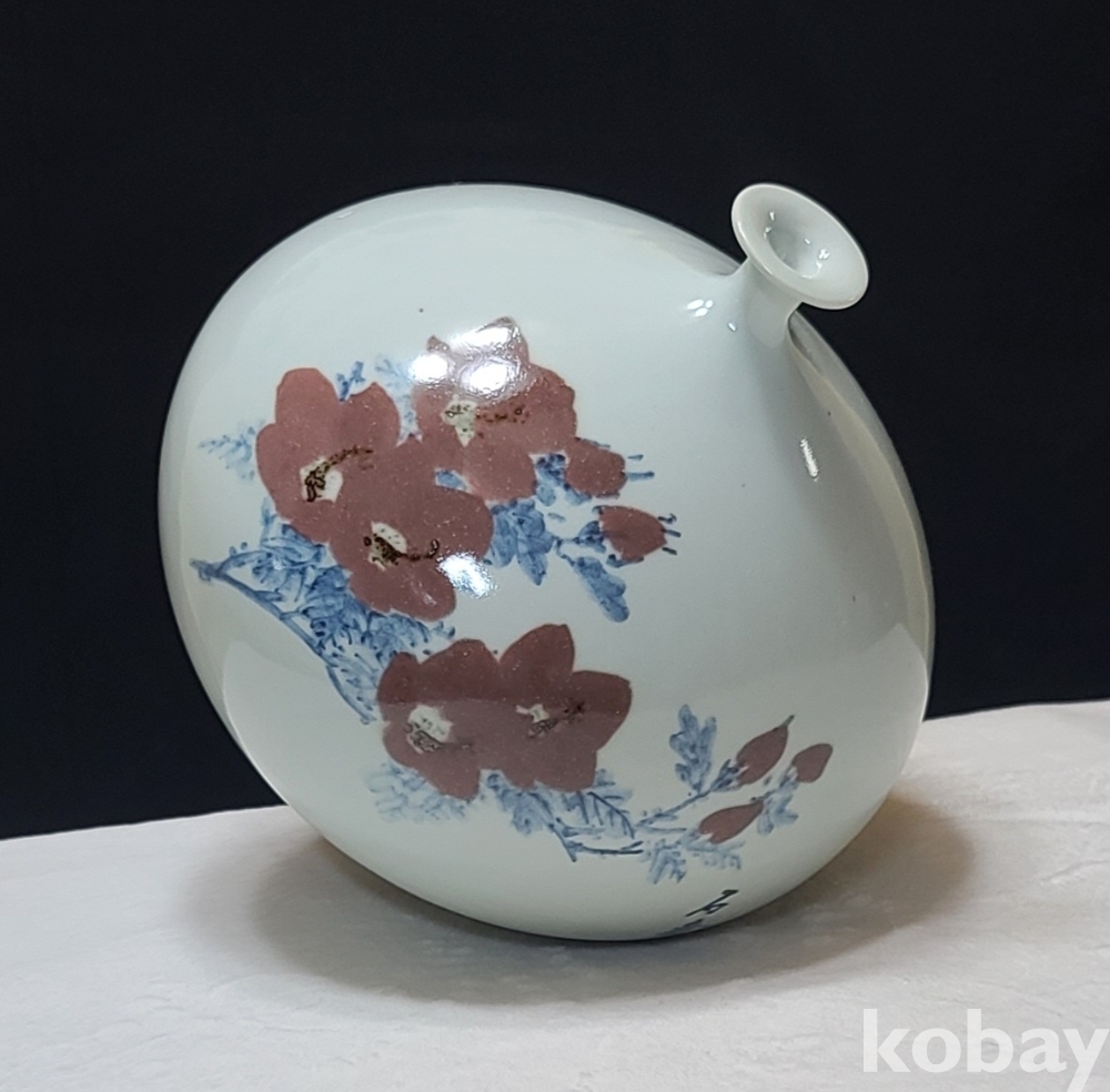 광주왕실도자기 초대명장이신 "지당" 박부원 作 <백자진사철화청화모란문소구호> 입니다.