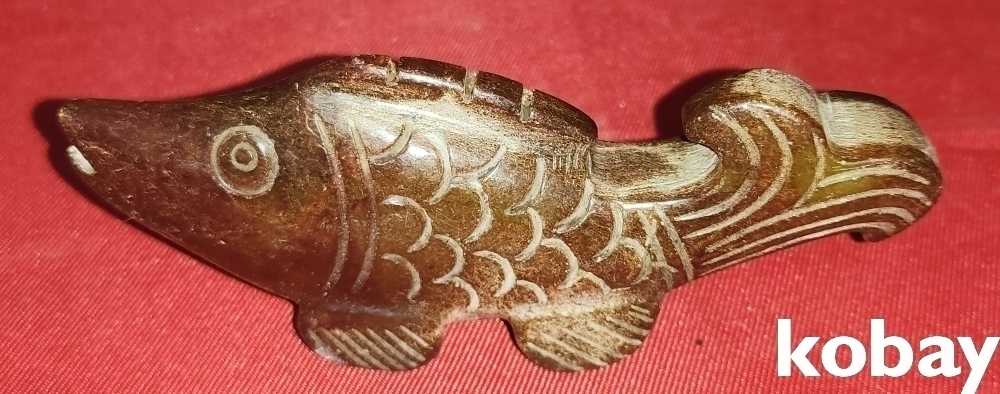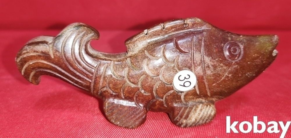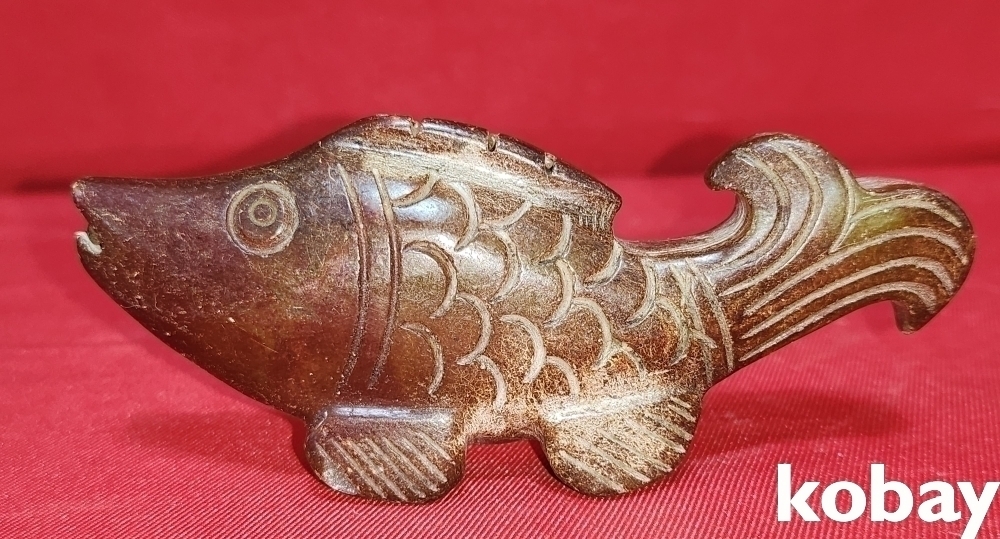 황옥(黃玉)으로 만든 물고기 형상 조각품입니다,