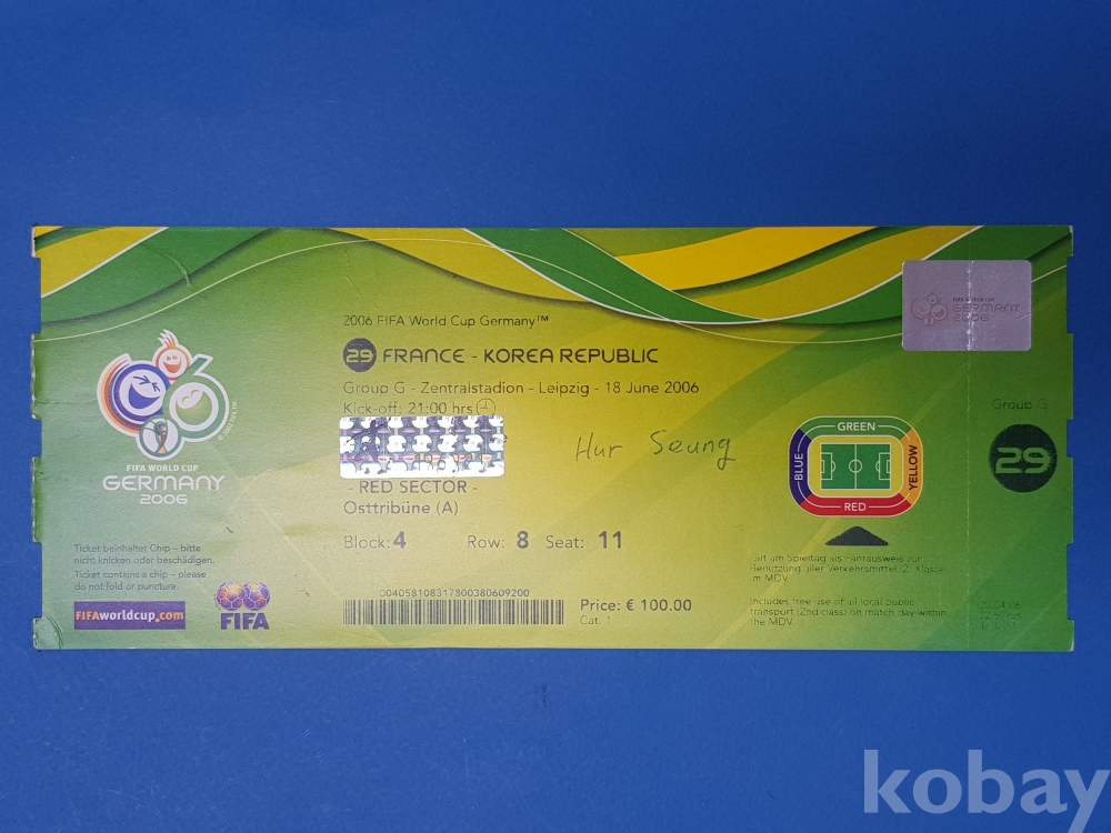 **** 2006 FIFA 월드컵 독일 티켓/프랑스-대한민국/G조 - 첸트랄슈타디온 - 라이프치히 - 2006년 6월 18일