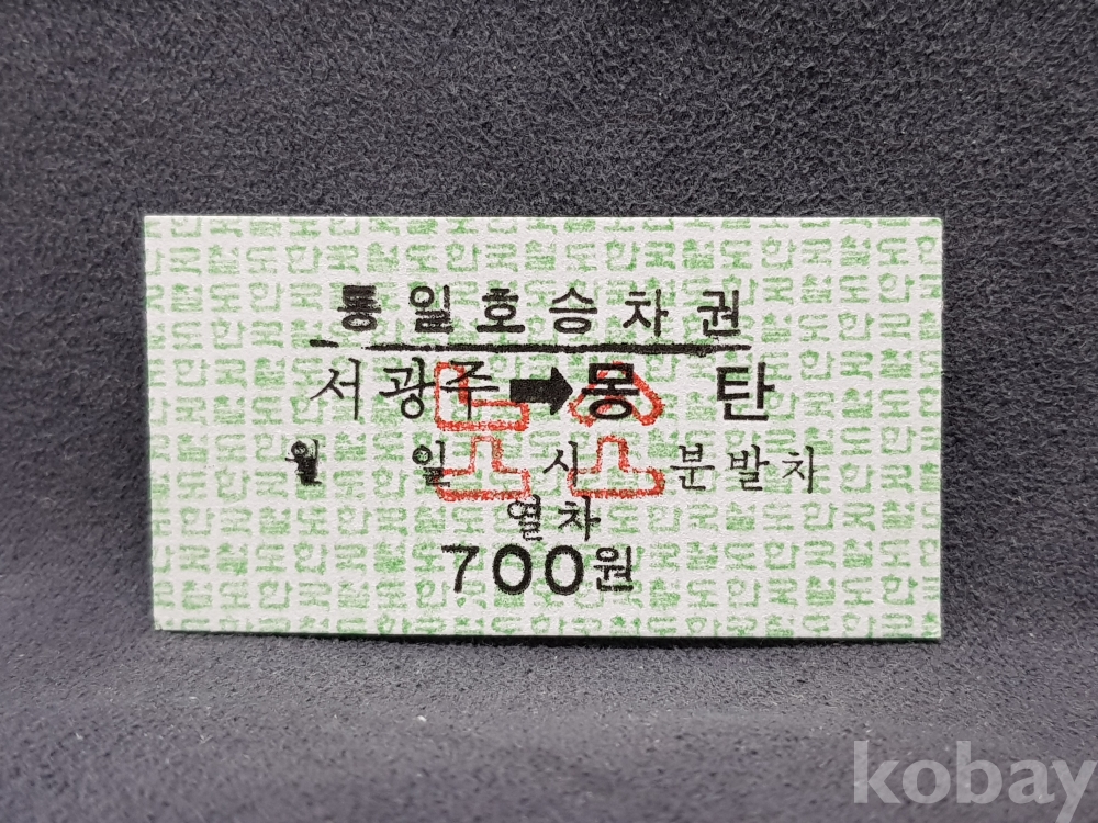- 미사용 통일호 승차권 노소 " 서광주 ▶ 몽탄 " 700원