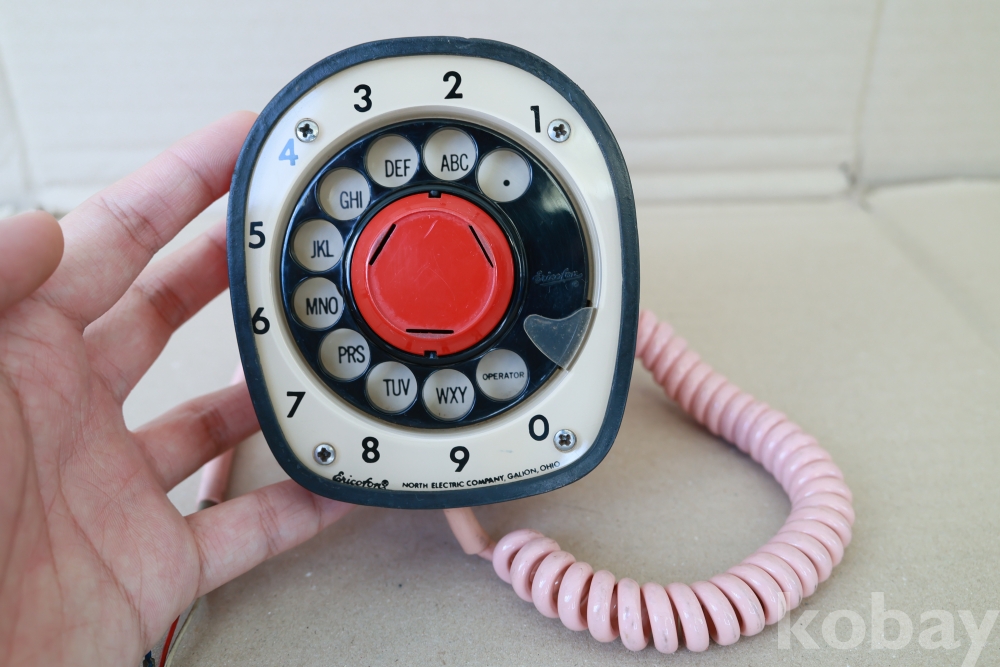 현대적인 유선형 디자인의 시초라 할 수 있는 이 전화기는 스웨덴 에릭슨 사가 개발하고, 본 출품작은 미국 오하이오주의 '노스 일렉트릭(NORTH ELECTRIC COMPANY)' 사에서 라이선스 생산한 북미판 오리지널 빈티지 모델입니다. 바닥면의 영문 각인이 그 정통성을 증명해 줍니다.