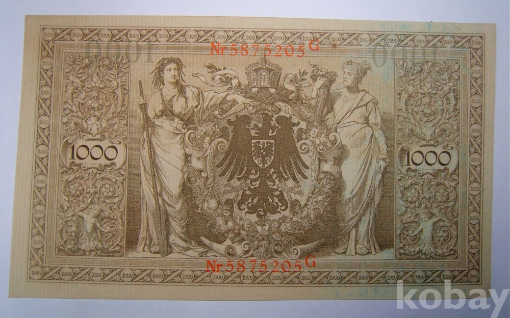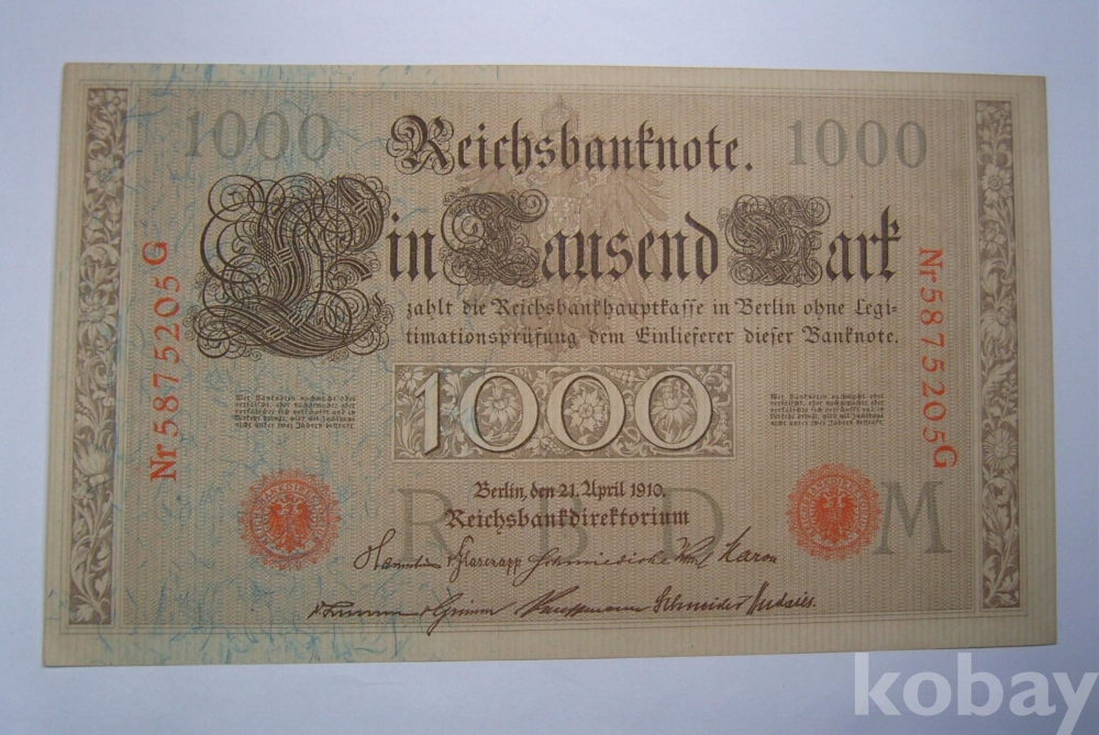 이 화폐는 1910년 독일제국 빌헬름(Wilhelm) 2세 때 발행됐습니다. 특색은 1000 마르크