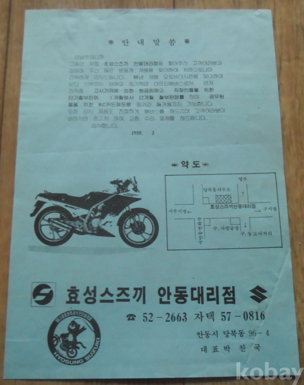 안동자료(전단지): 1988년 효성스즈끼 안동대리점