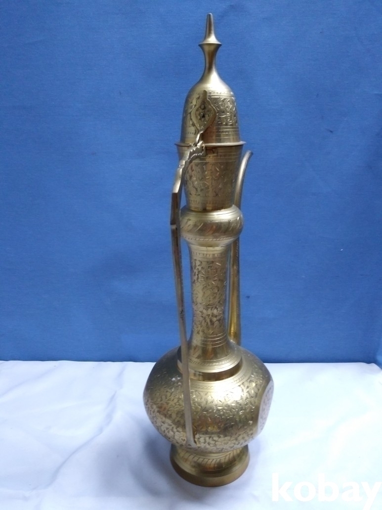 몸통 전체에 음각으로 문양이 멋있는 대형 동 주전자 입니다.