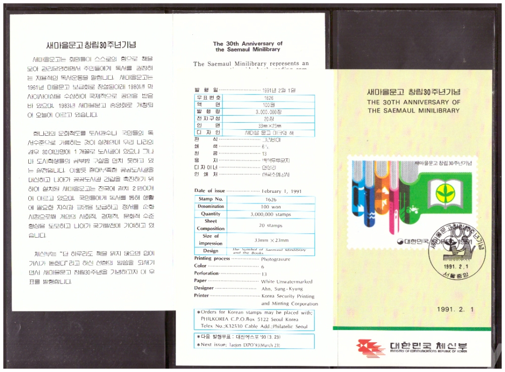 (안내카드) 1991.2.1 새마을문고 창립 30주년 (접지않음)