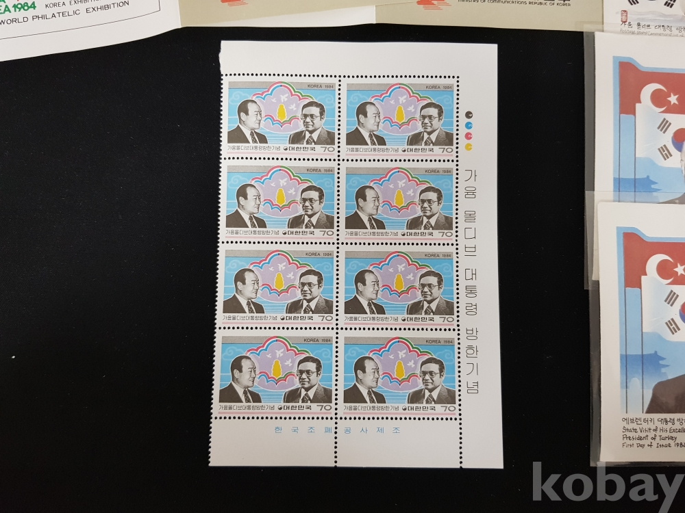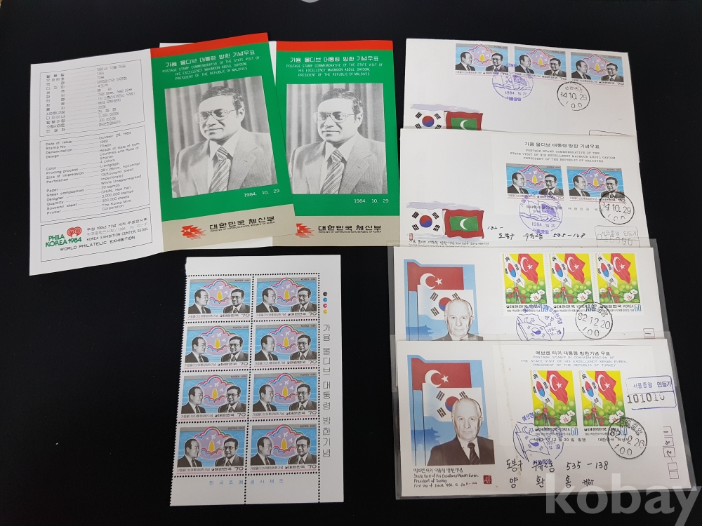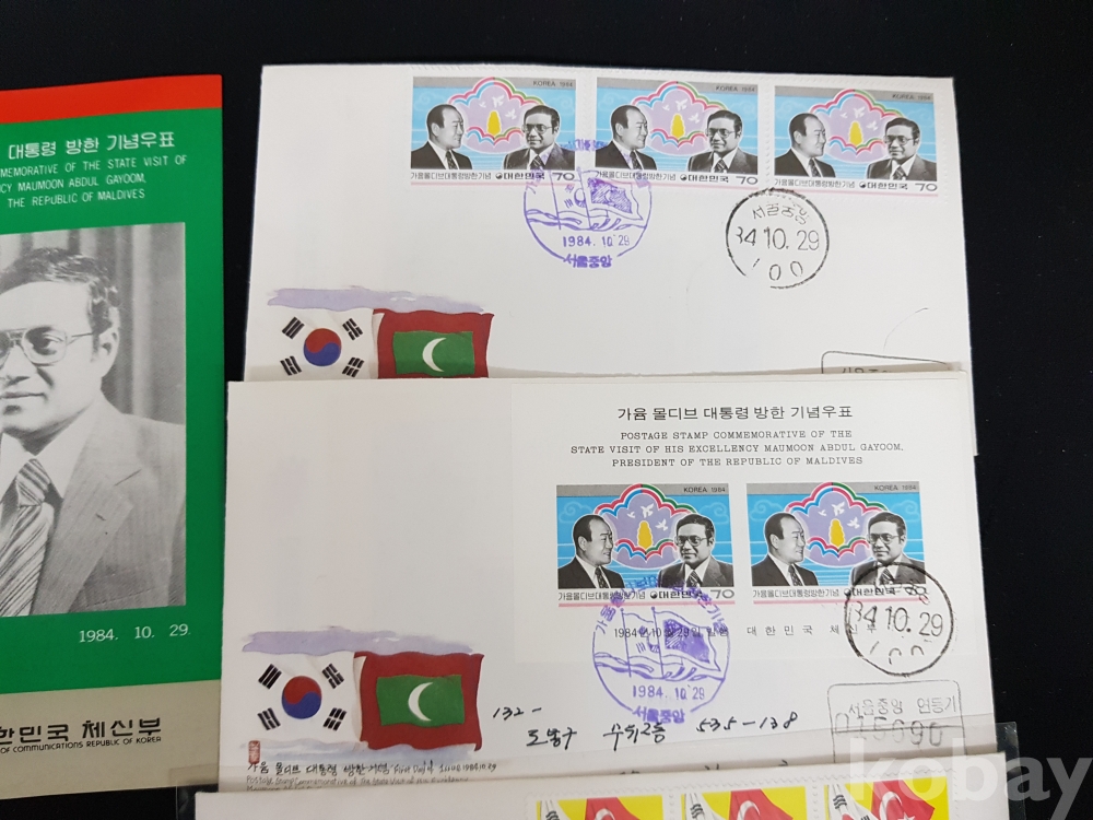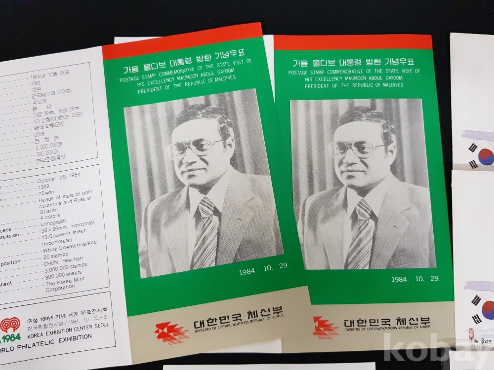 - 1984년 가윰 몰디브 대통령 방한 등 안내카드, 초일봉피, 명판 등 모음