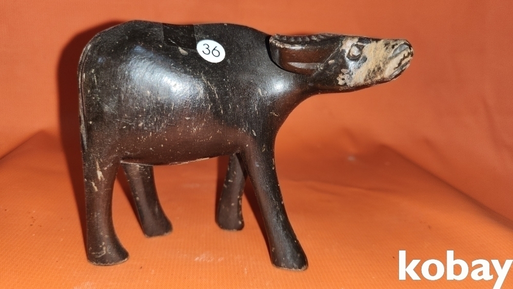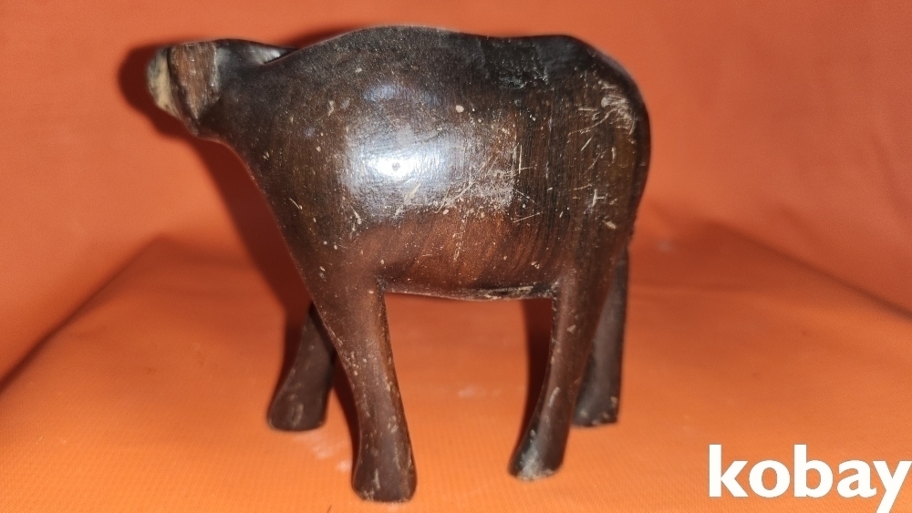 나무로 완성된 황소(牛) 형상 조각품입니다,