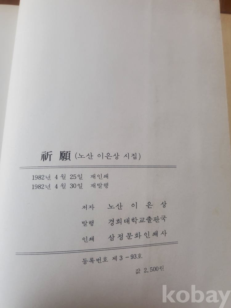 1. 기원, 이은상, 경희대학교출판국, 1982년, 115쪽, 상태 상, 사진 참조
