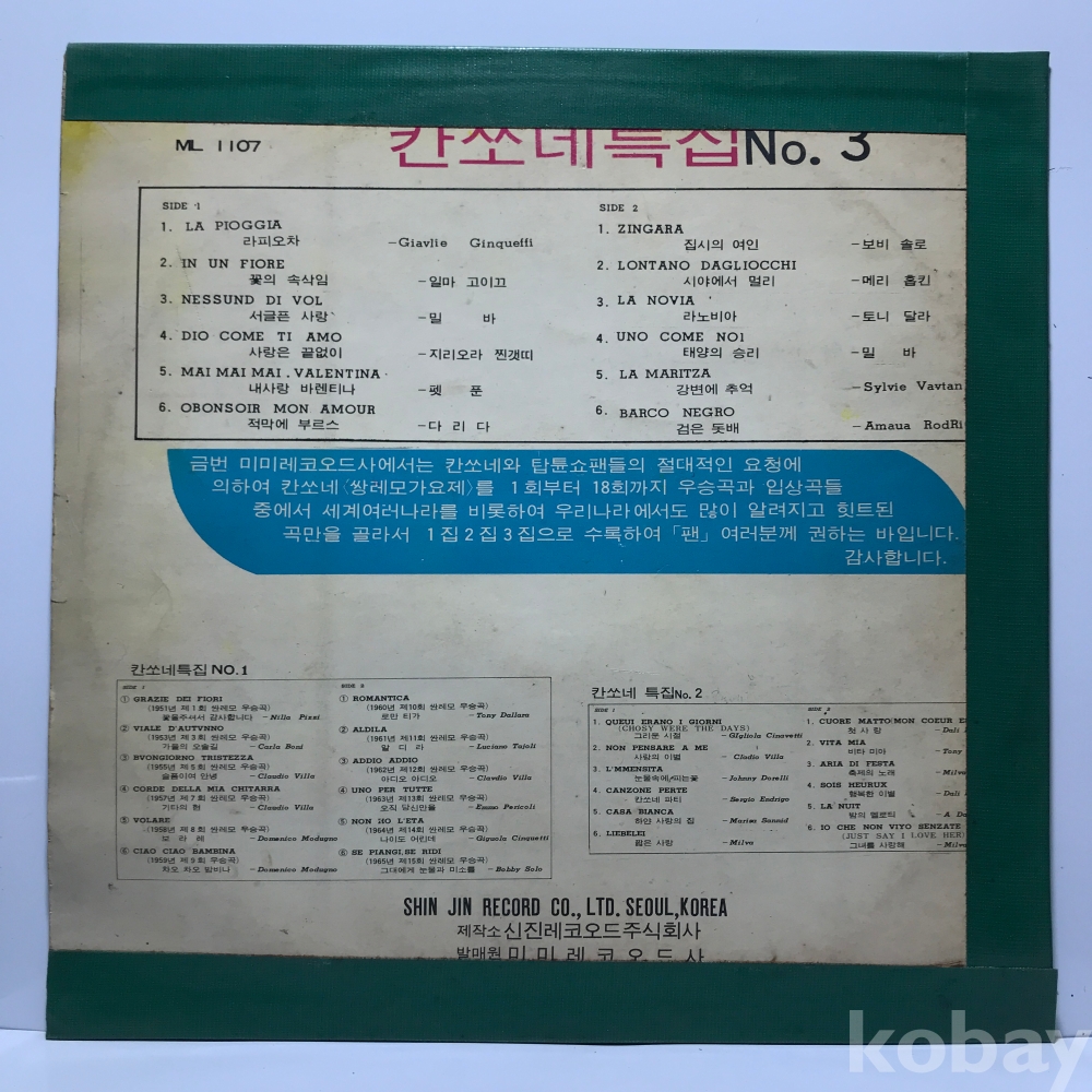 LP 83,840-31 칸쏘네 특집 No. 3 (SAN REMO FESTIVAL HITS) . 자켓 VG 알판 VG+ 국내반