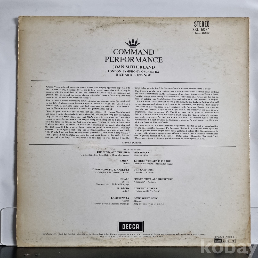 조안 서덜랜드(Joan Sutherland) Command Performance Volume 2 DECCA 성음