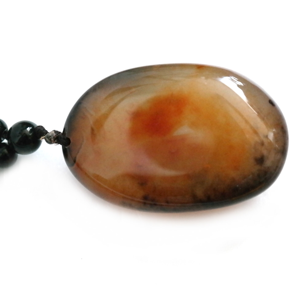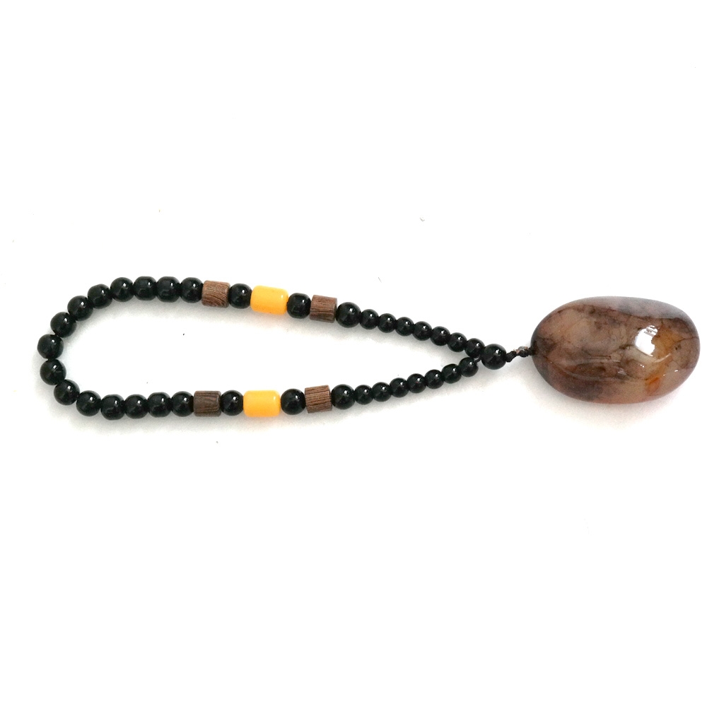 줄의 검은부분은 원석으로 만들어졌으며 마노옥 펜던트가 매달린 차량용 차걸이 입니다