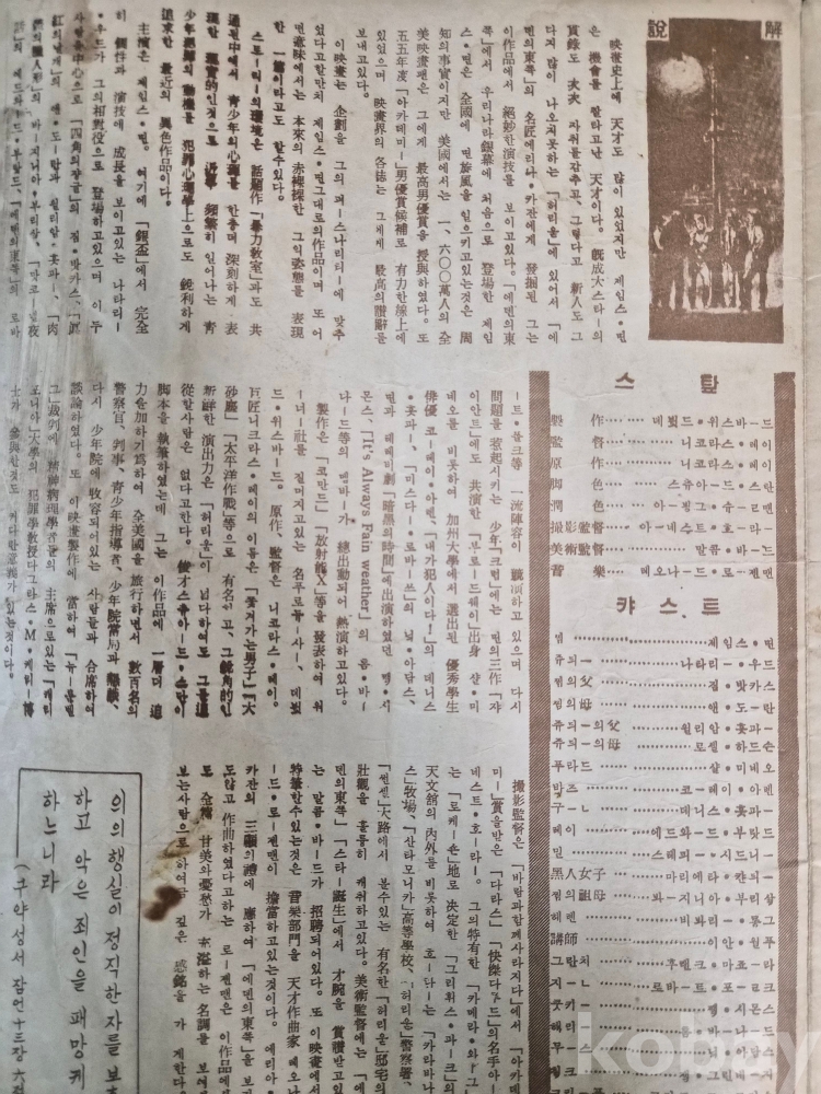 [희귀 근대사 자료] / (영화포스터/영화카드/리플렛/광고카드 등) 1955년(총 8면) / 이유없는 반항(제임스 딘 나탈리 우드)