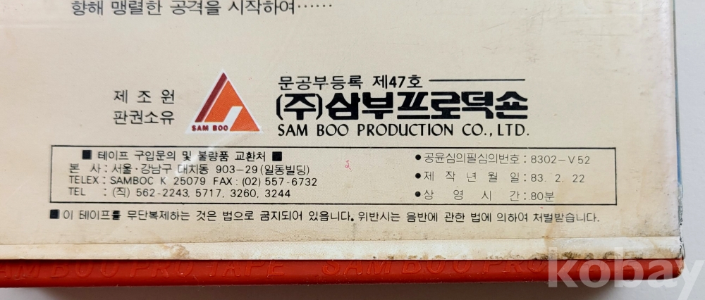 물 품 명 | 돌아온 번개아톰 / 장편만화영화 / 1983년 / 삼부프로덕션 |