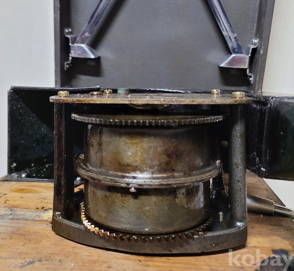 사용 횟수가 적은 기계는 마모 부분 없이 부드럽게 돌아가고 회전판과 사운드박스 포함 내장 부품들도 깨끗하지만 외장 부품은 부식 아닌 약간 자연 녹소가 끼어 세월 흔적 있습니다.