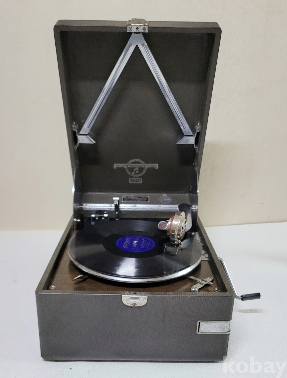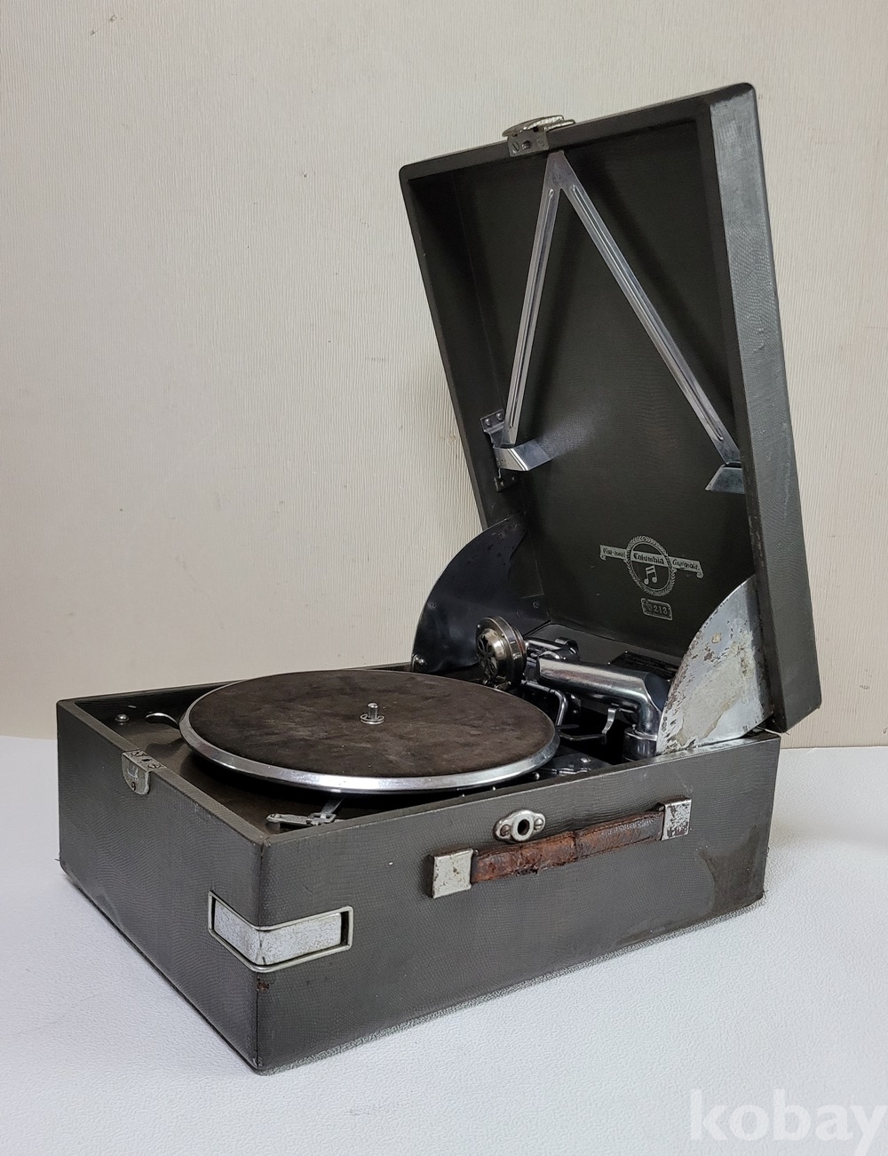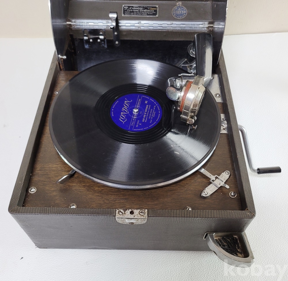 1920년대 일본 COLUMBIA 가방식 휴대용 축음기(모델 N0 213 80110)로 기계 잡음 없는 작동에 재생음 풍성하고 우렁찹니다.