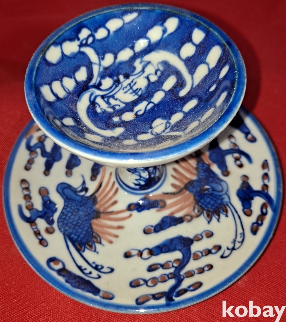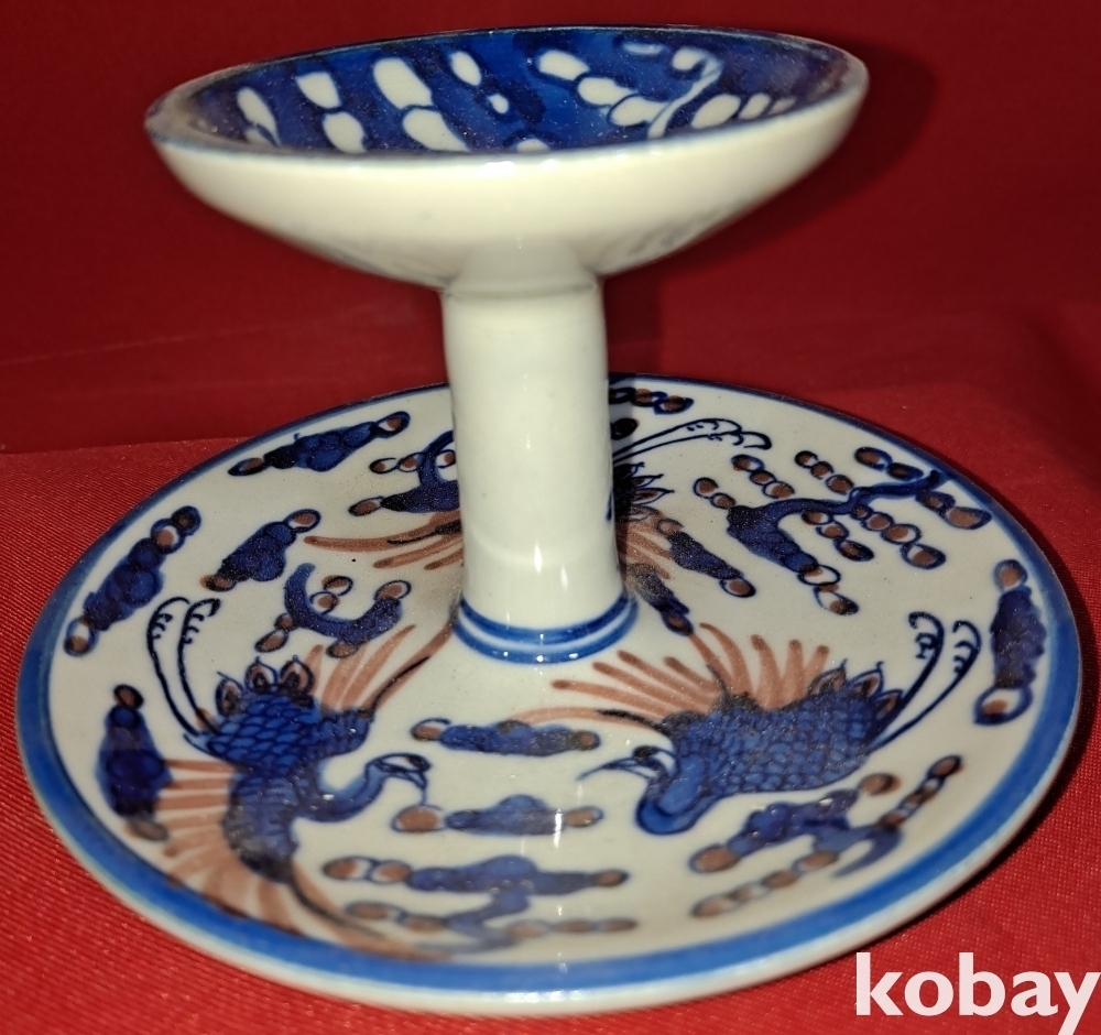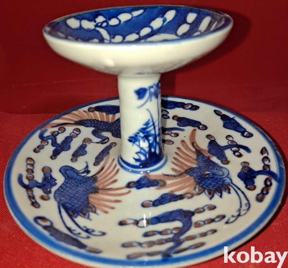대청건륭연제 학(鶴)문양 2단 도자기(촛대)입니다,