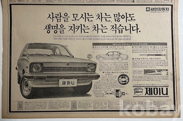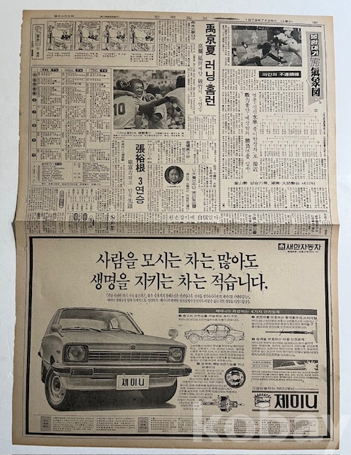 새한자동차 광고가 실린 한국신문 낱장입니다.