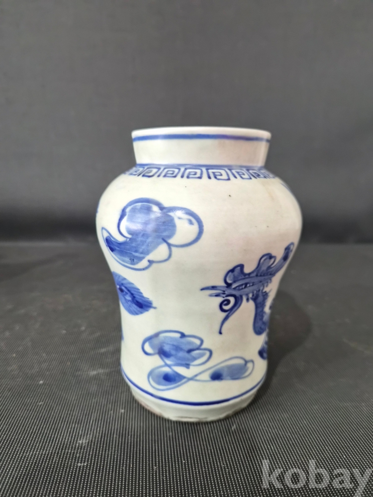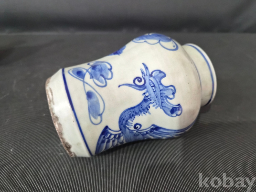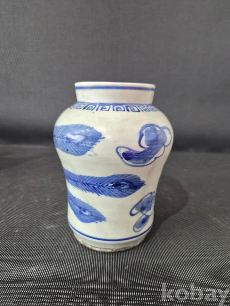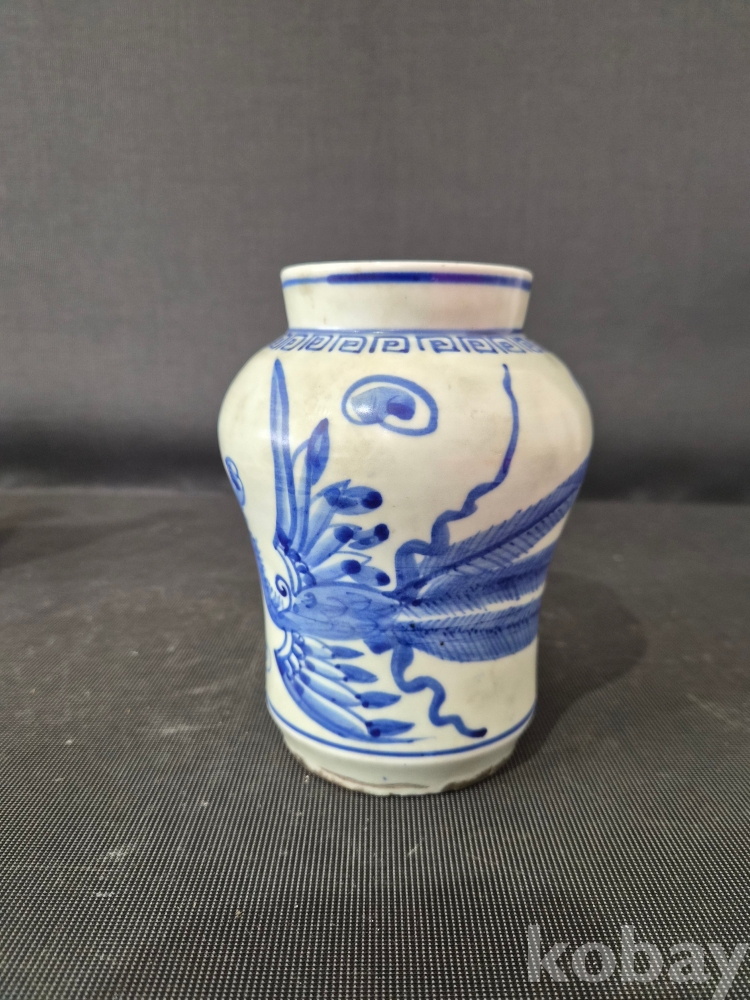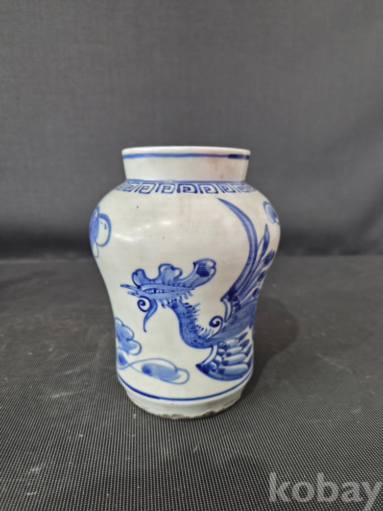 청화백자 운봉문 작은 봉준입니다.청화색상도좋고 봉황 한마리가 몸전체로 시문되어있습니다. 상태는 완전하며 진위여부는 알수가없네요? 사진참조하시고 안목으로 신중한 응찰 부탁드립니다. 좋은감상하세요!