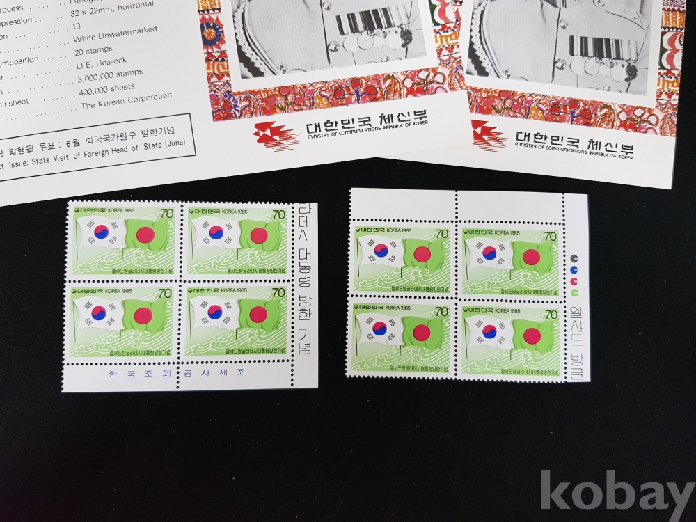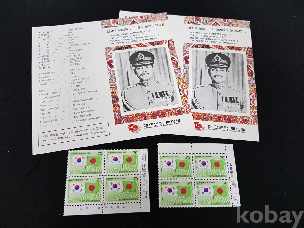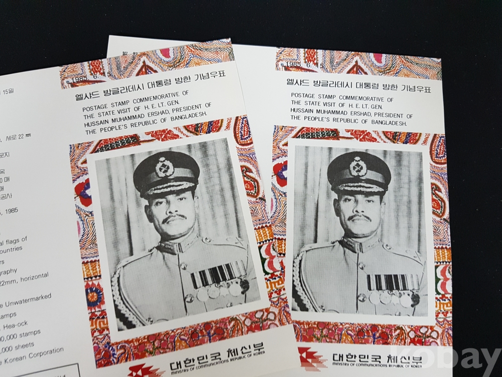 - 1985년 엘샤드 방글라데시 대통령 방한 기념 안내카드, 초일봉피, 명판 등 모음