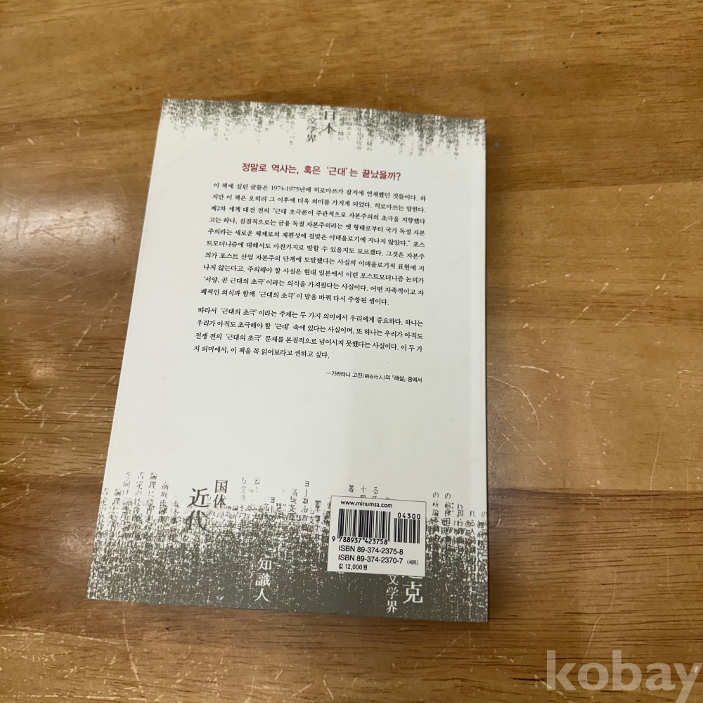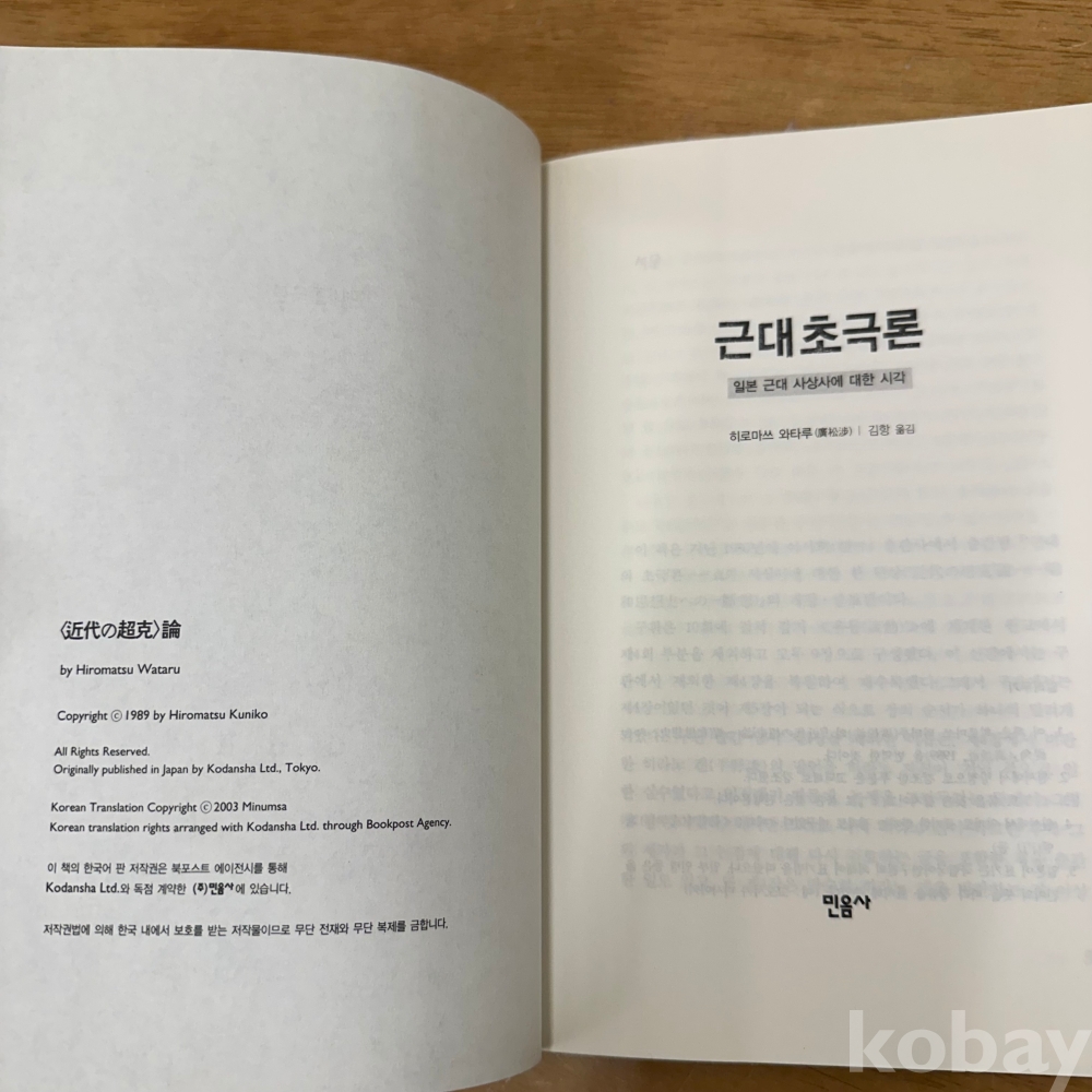 [일본근대사] 히로마쓰 와타루, 김향 옮김, <근대초극론 : 일본 근대 사상사에 대한 시각>, 민음사, 2003, p. 262, 상태 중급(사진참조)