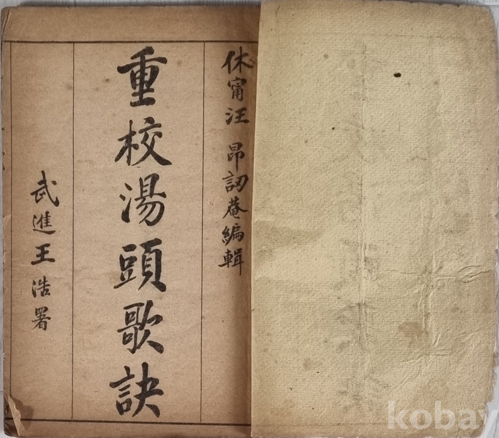 武進 王浩가 저술한 탕약에 관한 한의서로 희귀본임, 석인본, 박물관 고객 구입 전시권유 서적