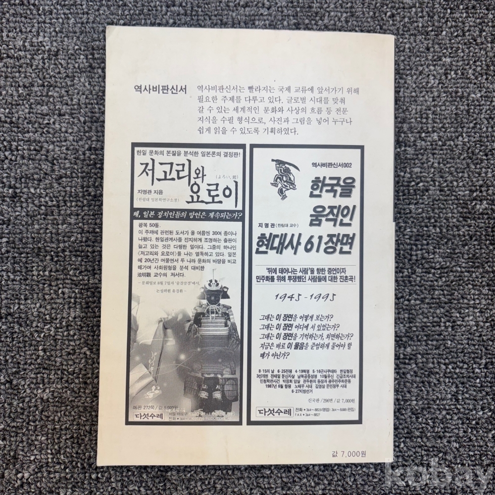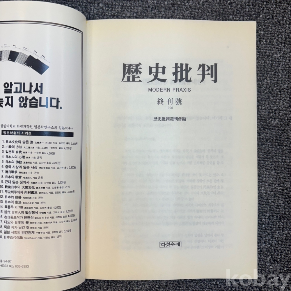 [한국근대사, 2.8독립선언, 일본 문화론] 역사비평발행회 편, <역사비판 Modern Praxis 13>, 다섯수레, 1994, p. 433, 중상급(사진참조)