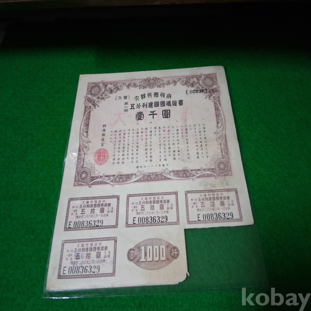 대한민국 1950년 건국채권 1회1000원 사용제