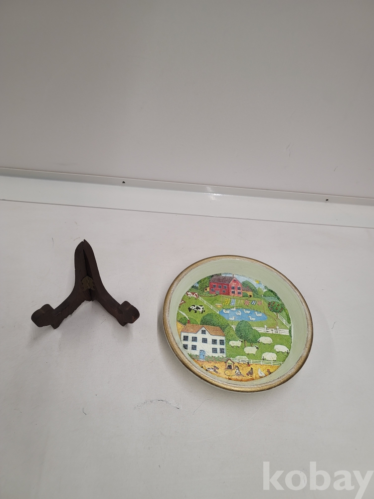 L - 1-0869 동물농장 그림이 있는 장식용 접시 (거치대 있음, 20*3.5)