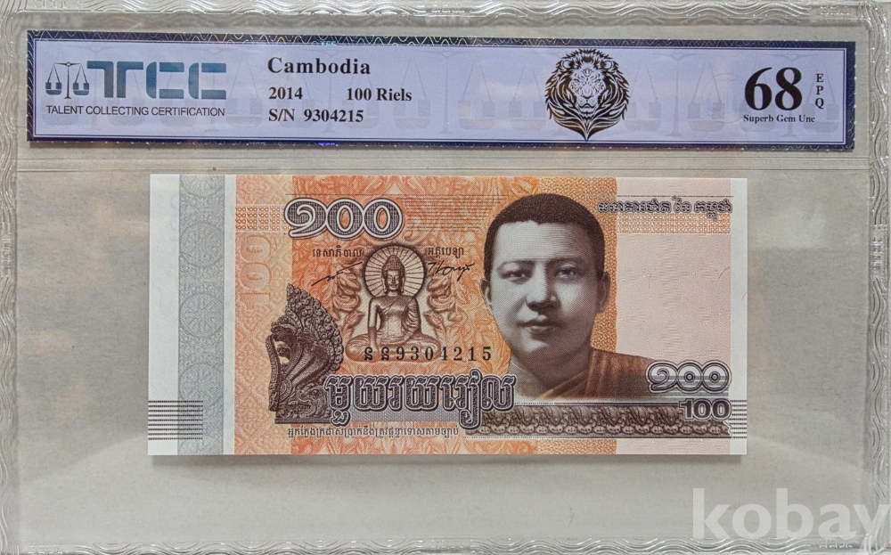 -2014년 캄보디아 100리엘 지폐 TCC68 고등급 입니다.