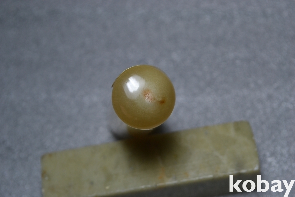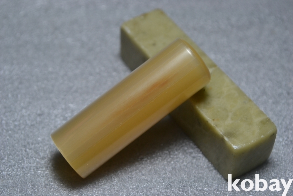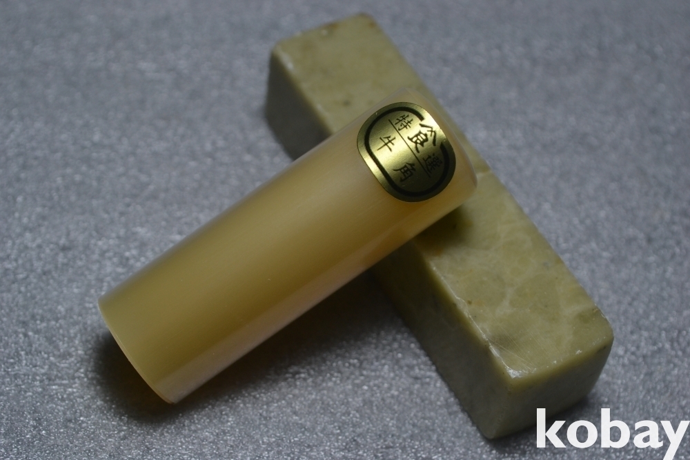 색상과 문양이 매우 아름다운 최고급 오란다 백수우(白水牛) 물소뿔 도장 작품 입니다.