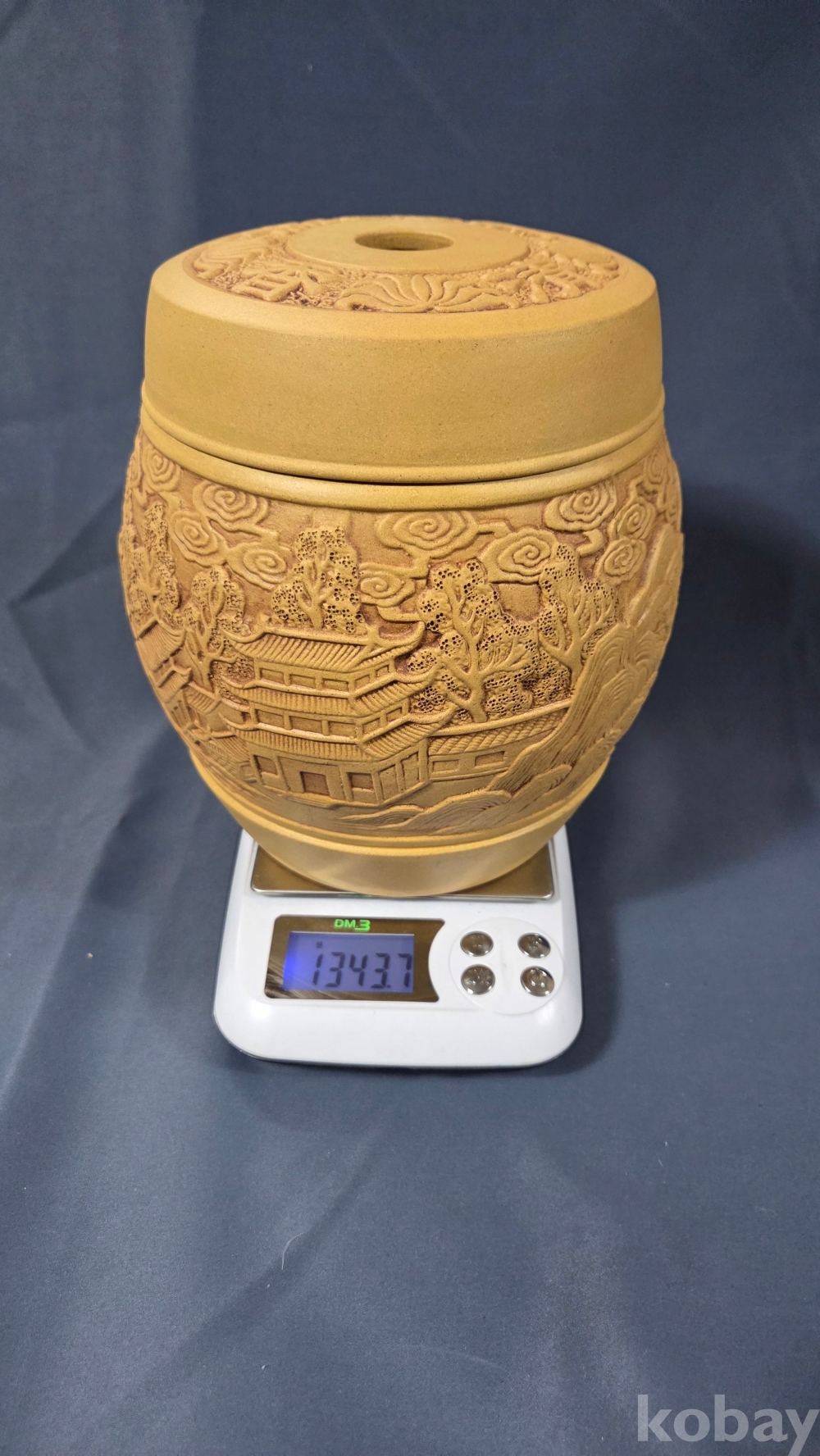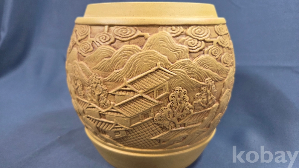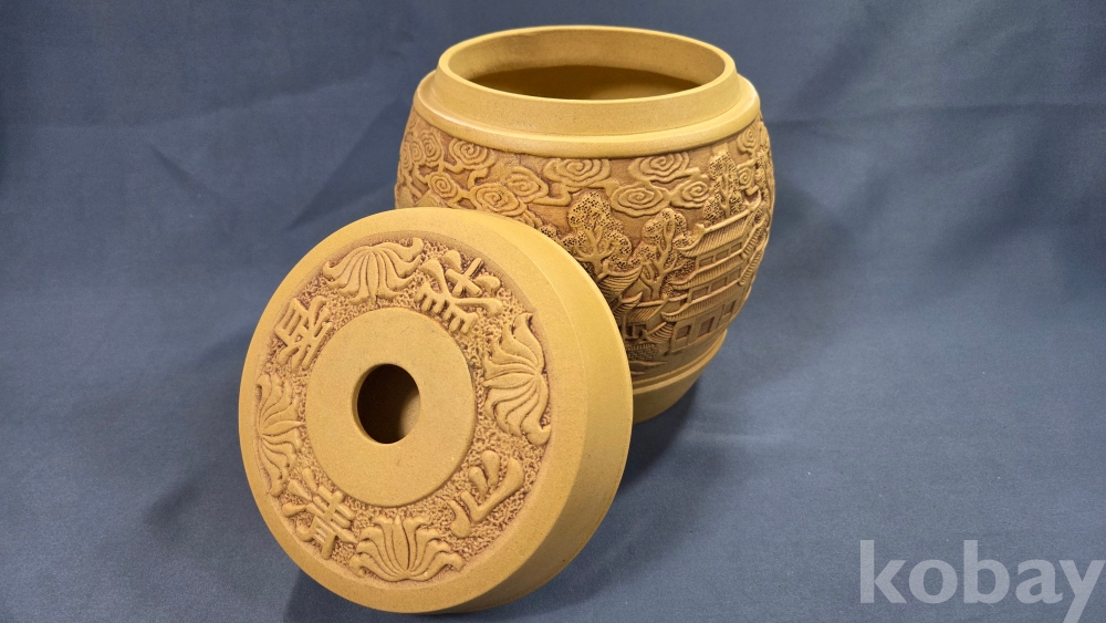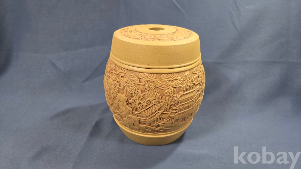 풍경 전각 구름 등 정교한 조각이 되어있는 자사재질의 차통 입니다.