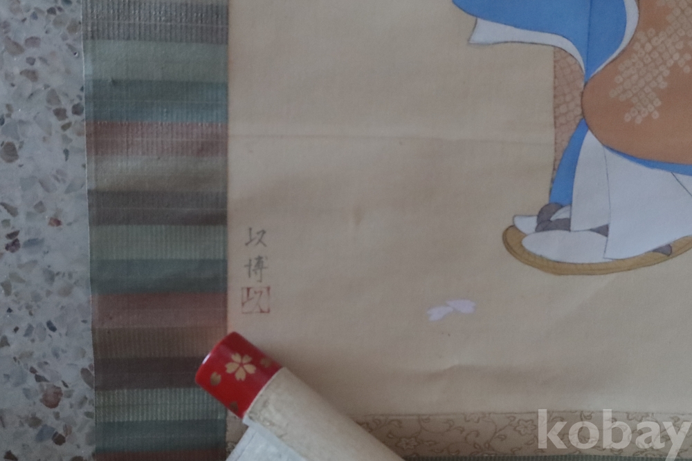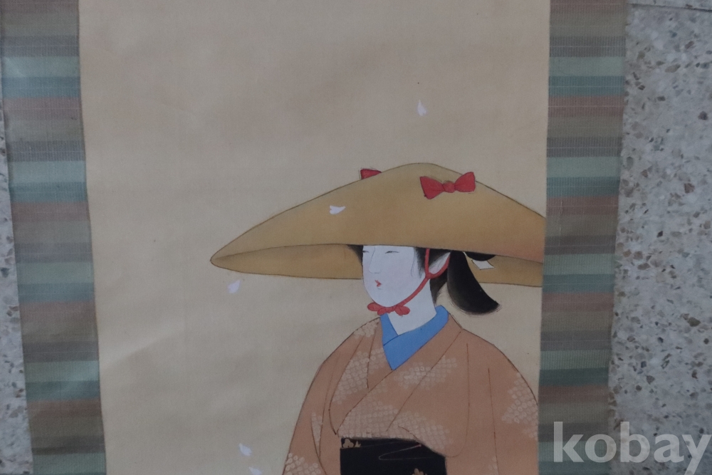 아름다운 미인 족자 이며 우아함과 멋을 가진 명화 임니다 빨간 축을 가진 명물 임니다