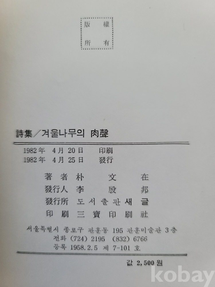 1982년 발간한 첫 시집 『겨울나무의 肉聲』