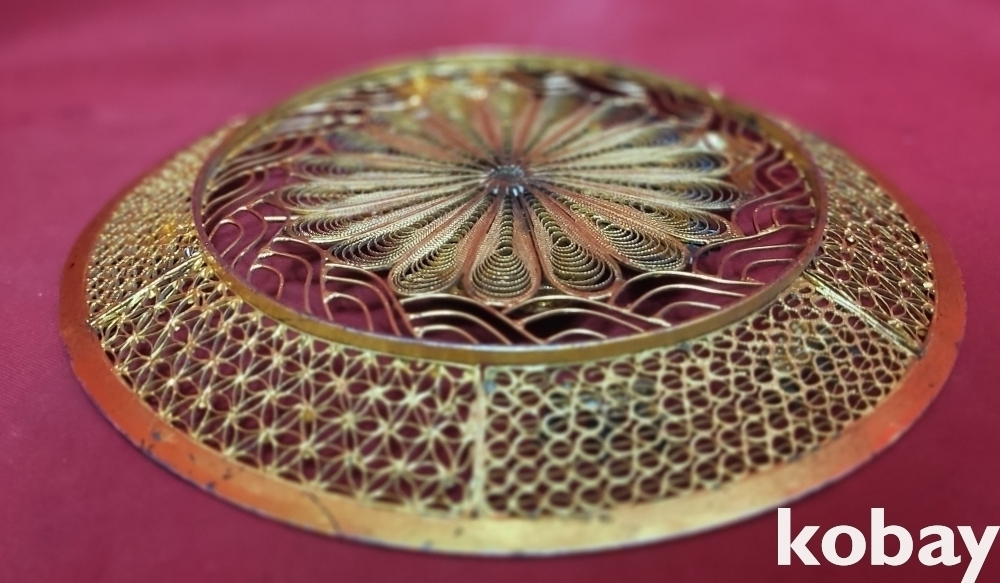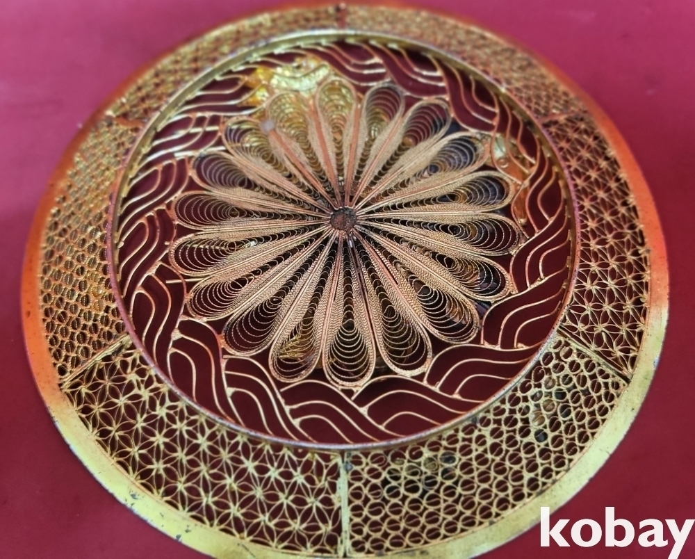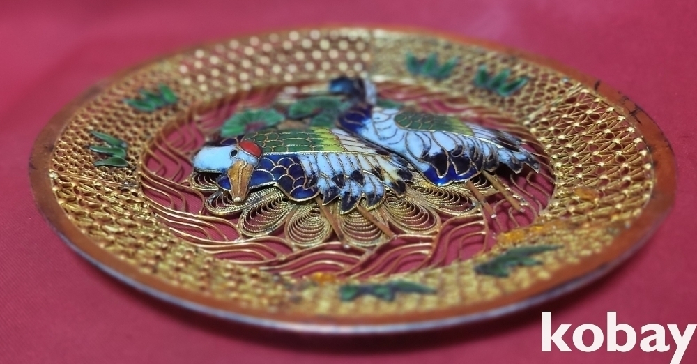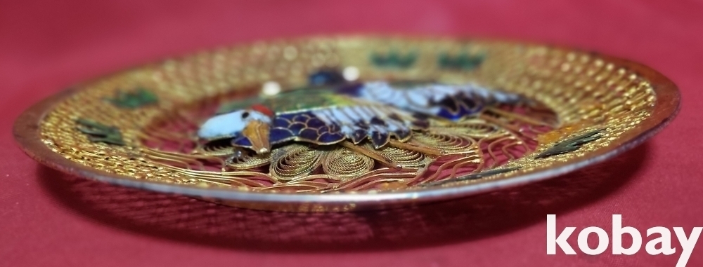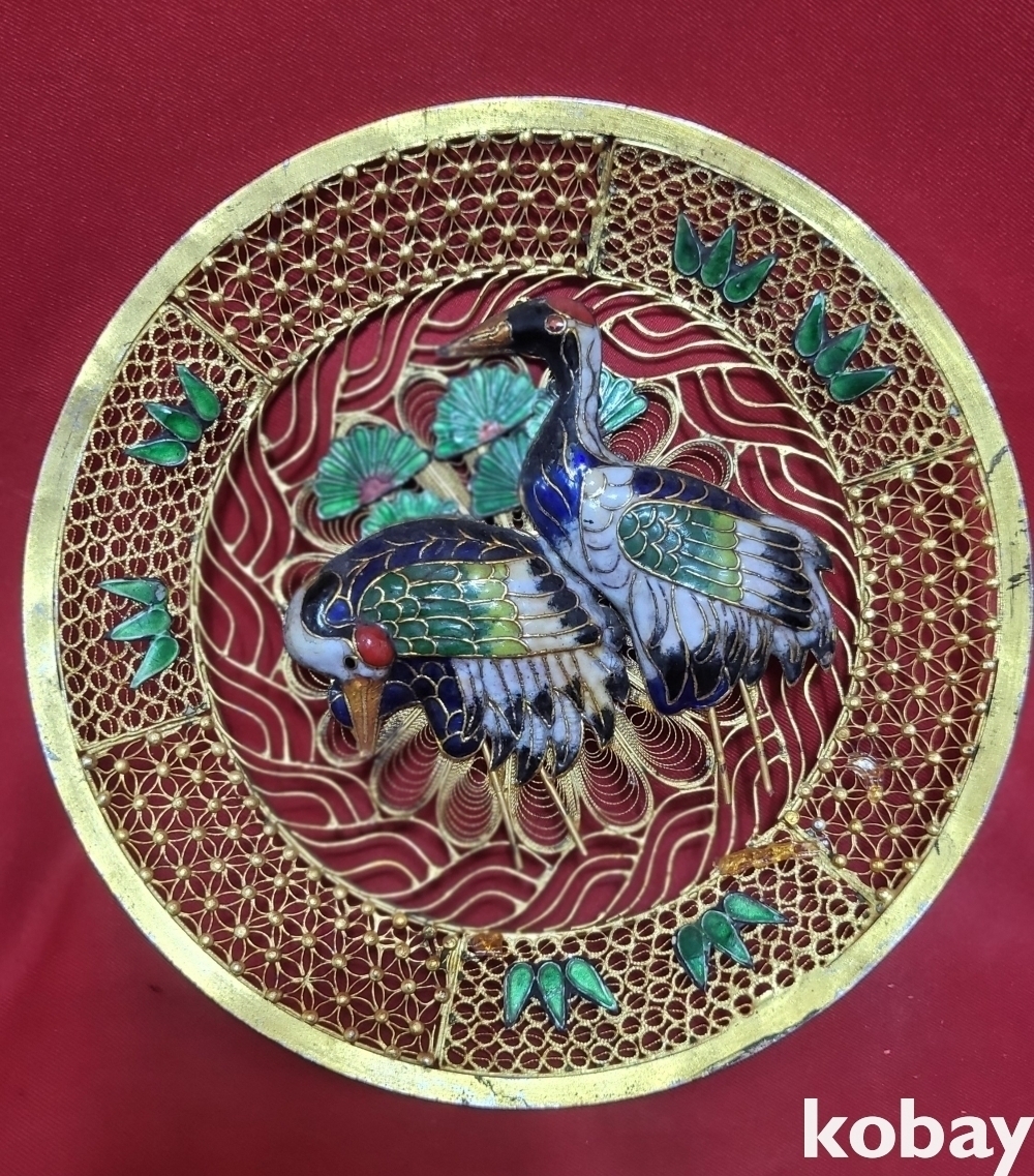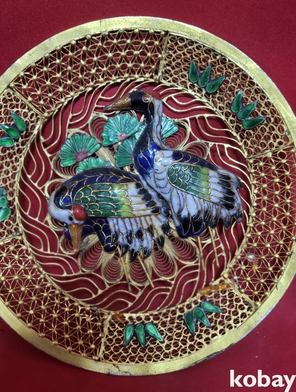 황동으로 만든 투각 칠보 쌍학문양 잘식품입니다,