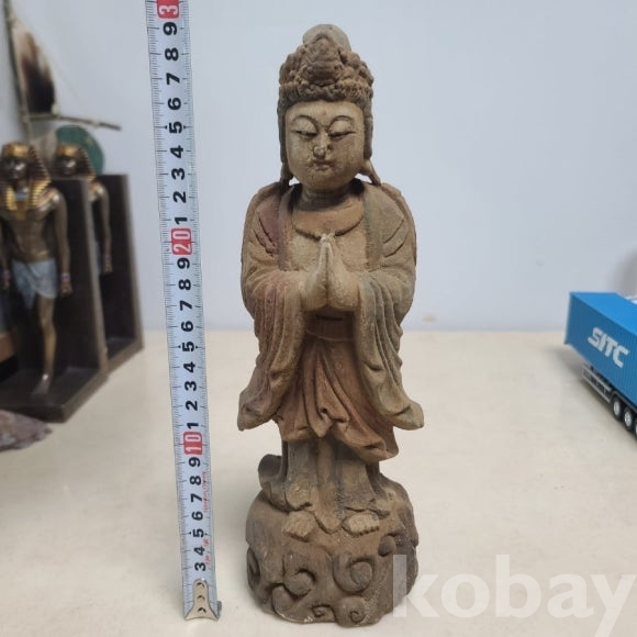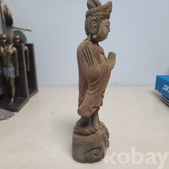 오래된 연식을 자랑하는 통나무 목불상 입니다. 나무 조각에 당채로 색을 더했습니다. 곳곳이 색이 바랬지만 세월에 비해 대체적으로 형태나 색감은 좋습니다. 사이즈도 좋고 분위기 넘치는 귀한 기물 소개합니다