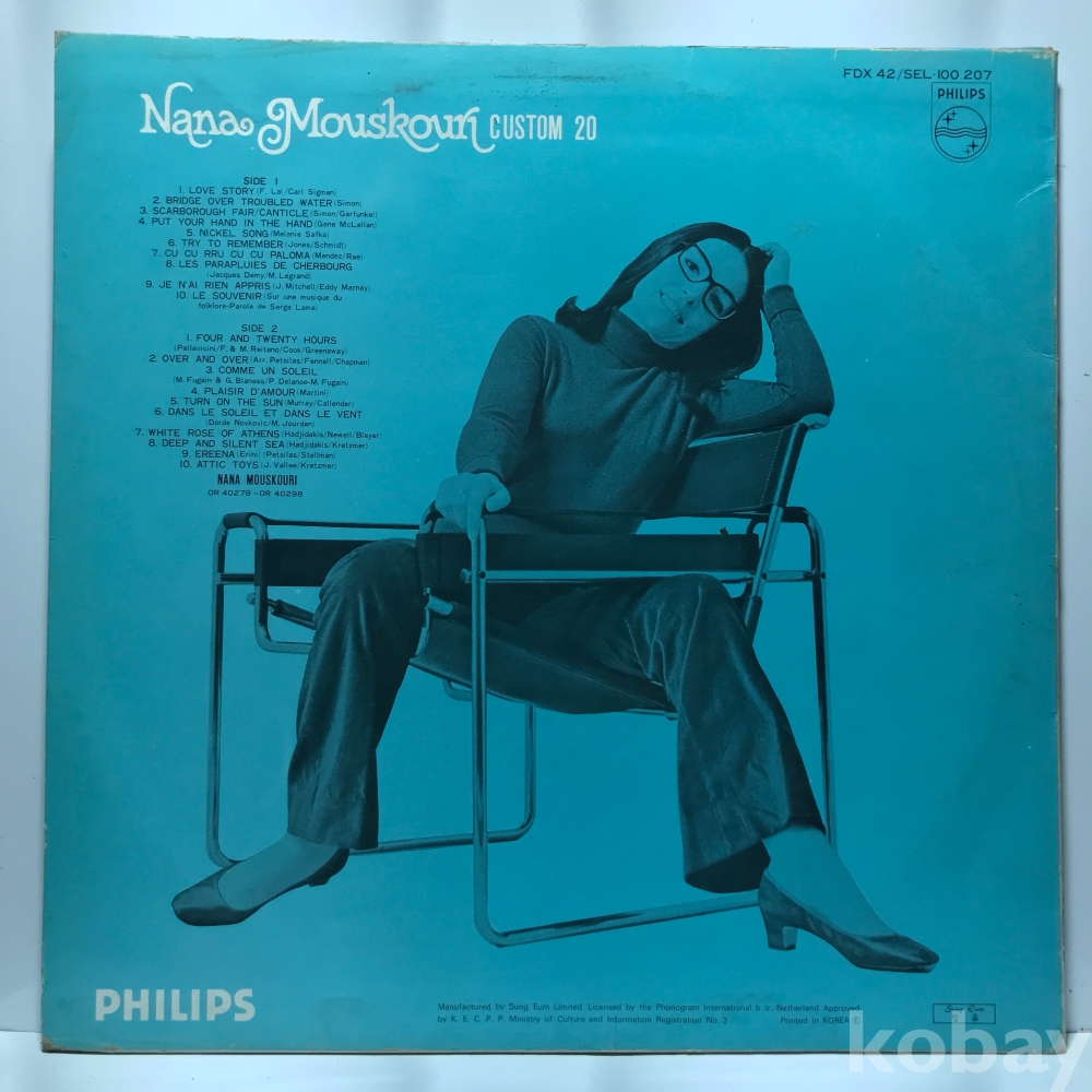 LP 10,720-18 Nana Mouskouri - Custom 20 . 자켓 EX 알판 EX EX- 75 년 국내반