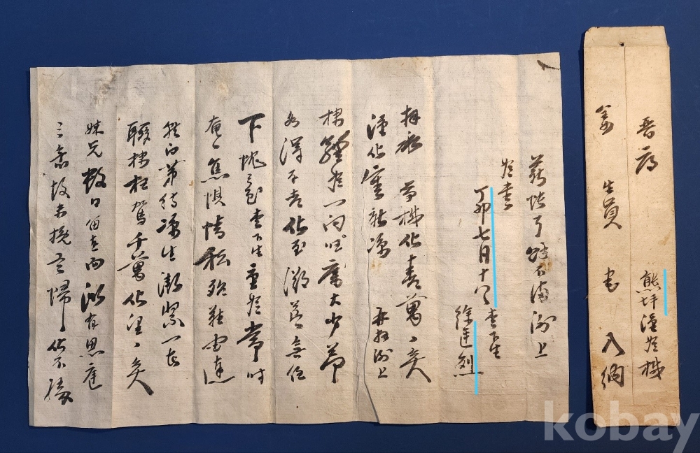 | 물품 크기 | 간찰 ±41.5㎝ x ±28.5㎝ /피봉 ±6.5㎝ 세로 ±30㎝ |