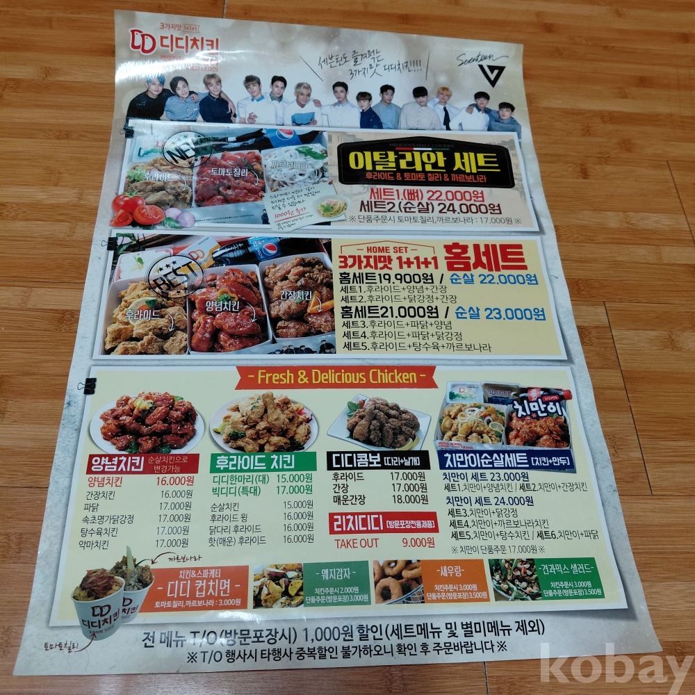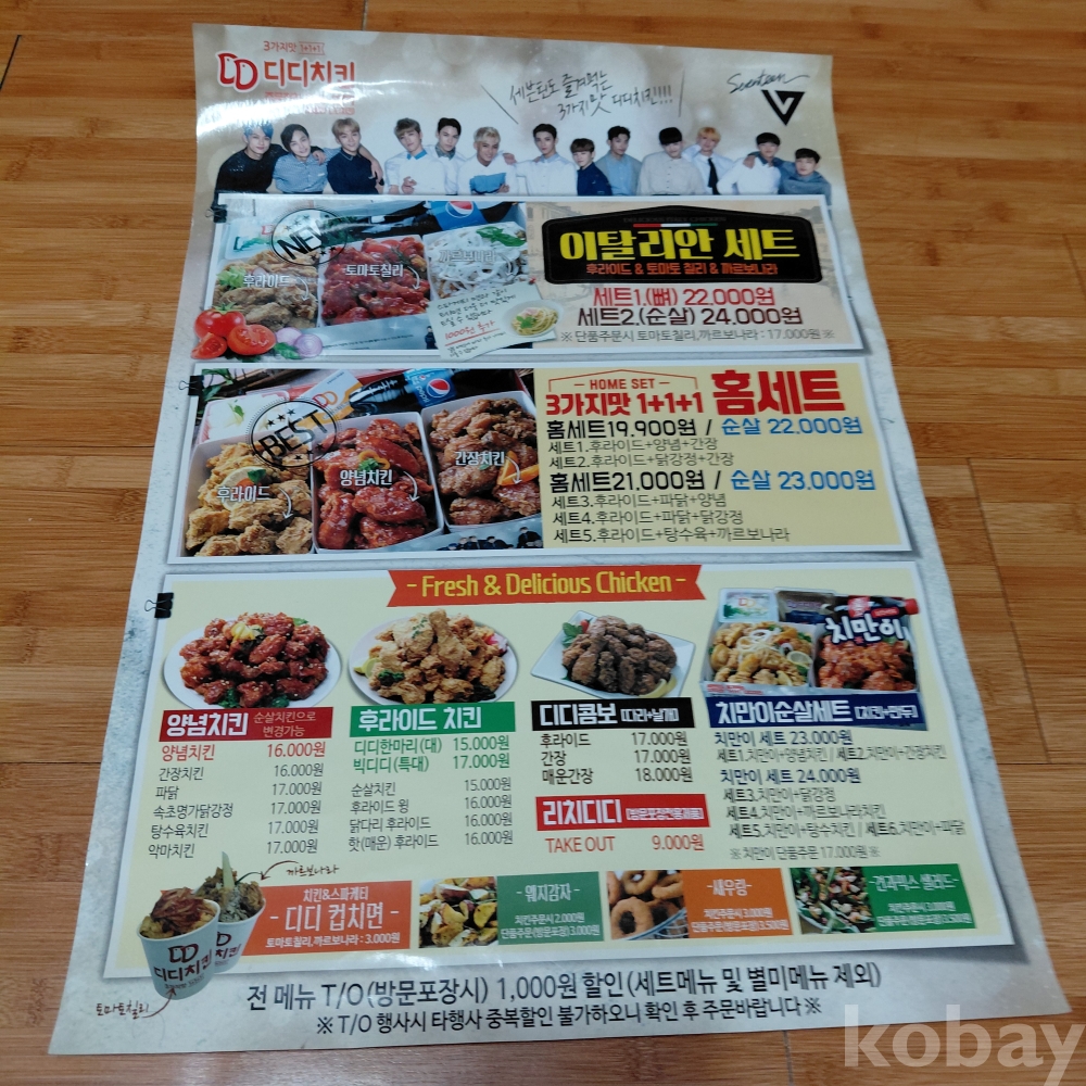 K팝 아이돌 그룹 세븐틴 DD치킨 광고 모델 홍보포스터 올려드립니다