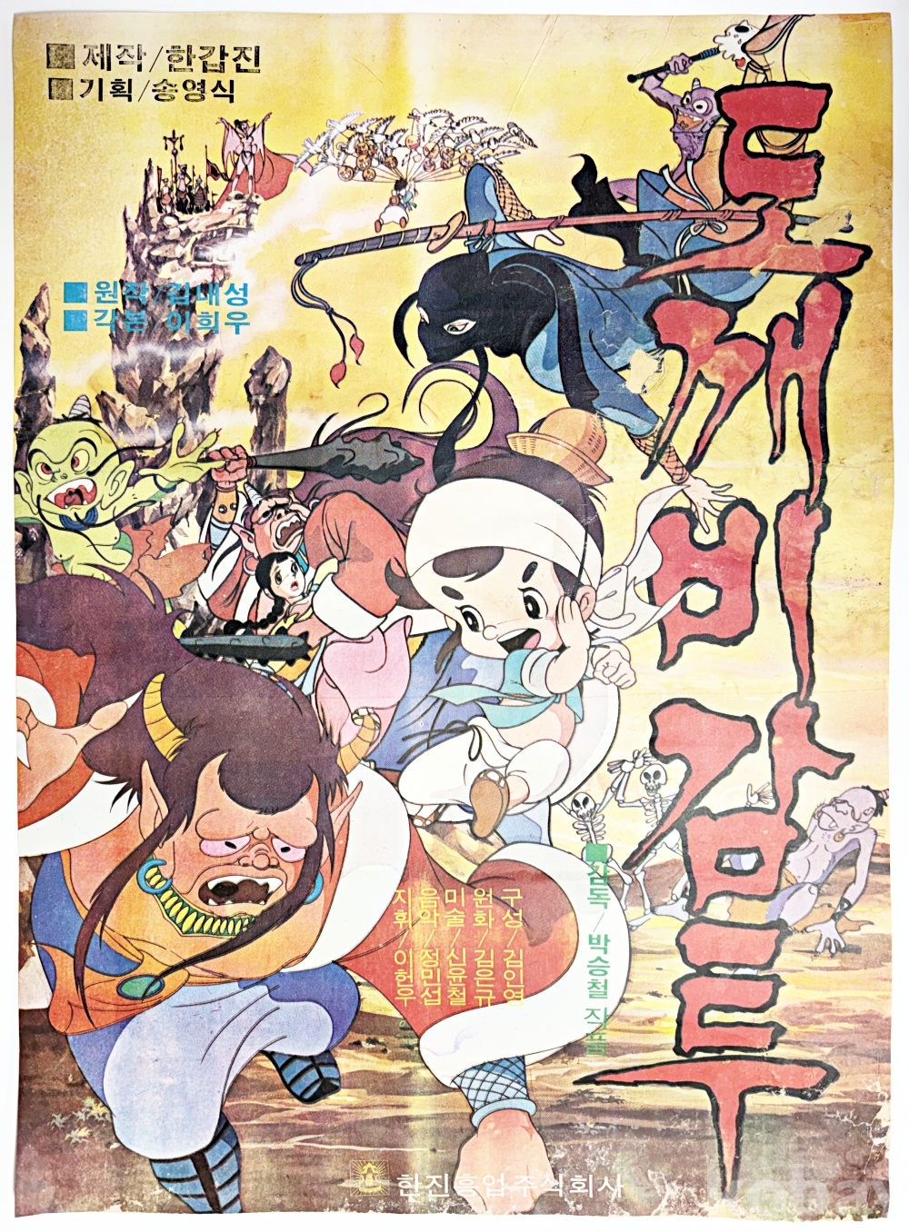 상품 설명 | 한국의 설화 '도깨비 감투'를 모티브로 한 극장용 애니메이션 포스터이다. 배접, 중앙부 벗겨짐 있음. | ||