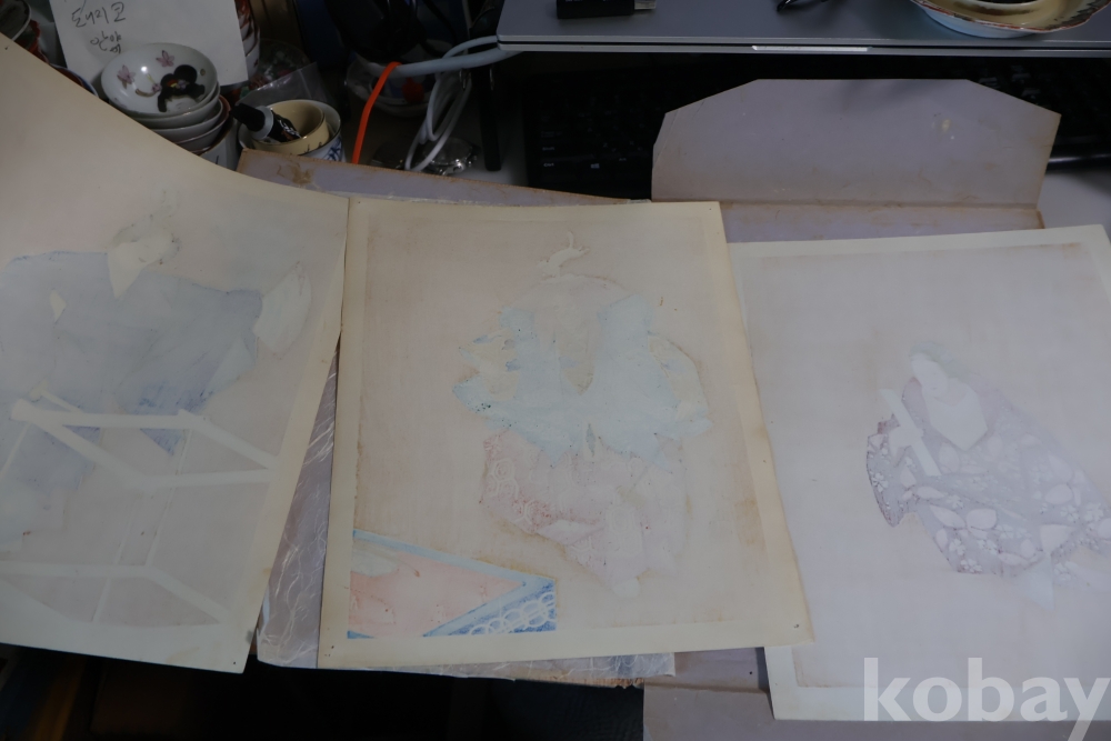 1945년 전후의 목판화 3 세트 이며 오리지날 재킷?에 보관해온 명화 임니다