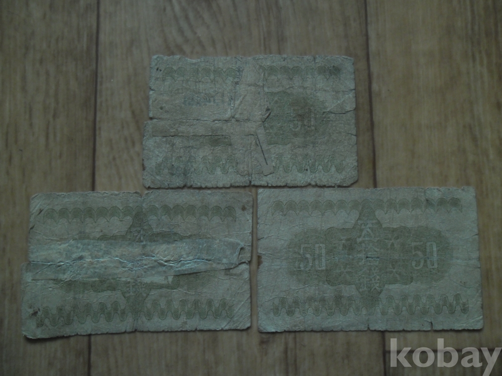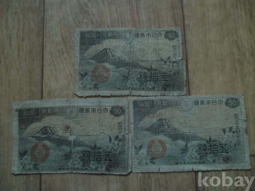 옛 일본 지폐 오십전권 3매