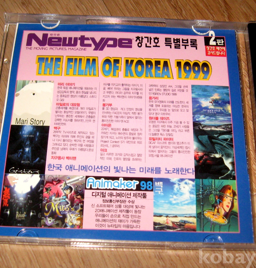 1999년 한국판 뉴타잎 창간호 특별부록 CD -ROM / 미공개 국내 애니메이션 동영상 베스트10