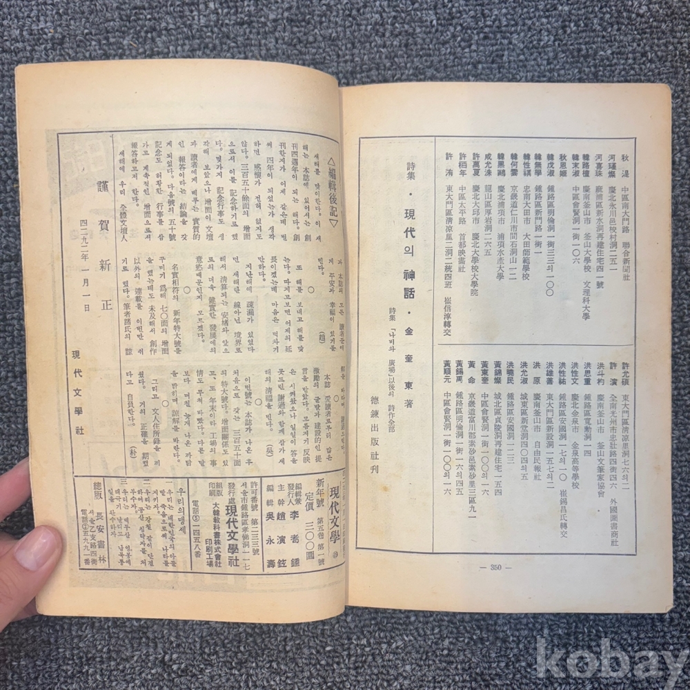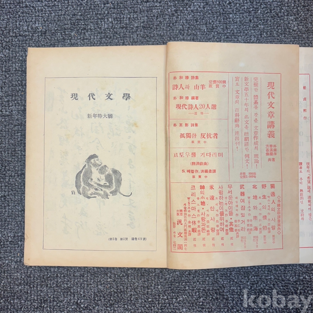 [한국현대사, 제1공화국, 하늘과 땅의 변증법] <현대문학 1959년 1월호 : 창간4주년기념 신년특대호>, 현대문학사, p. 250, 상태 중급(사진참조)